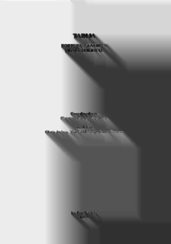 El libro "TARIJA: Pobreza, Género y Medio Ambiente", forma parte de una serie de cuatro perfiles elaborados para los departamentos de Potosí, Chuquisaca, Tarija y Cochabamba, con formatos y estructuras similares, donde se analiza el contexto de la situación social, de la economía regional, del avance de las mujeres, del medio ambiente, de la vinculación pobreza, desigualdades de género y degradación del medio ambiente, para desembocar en potencialidades y líneas de acción regional.