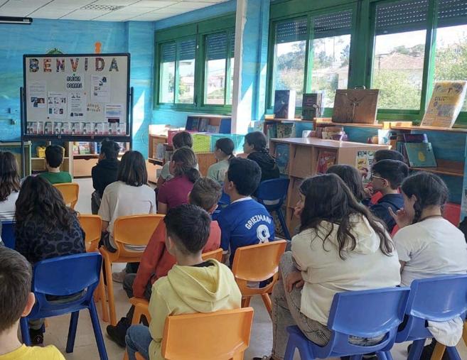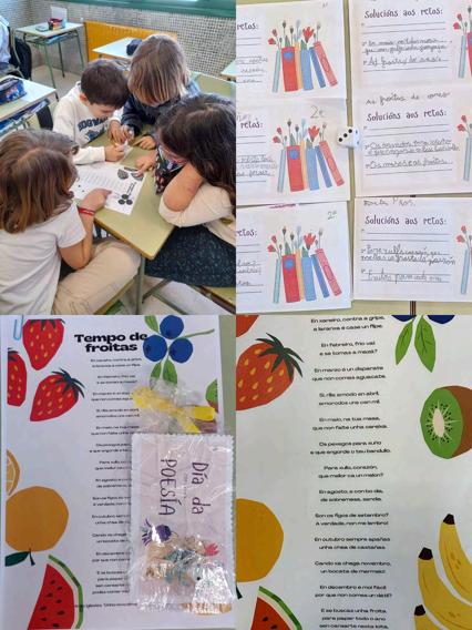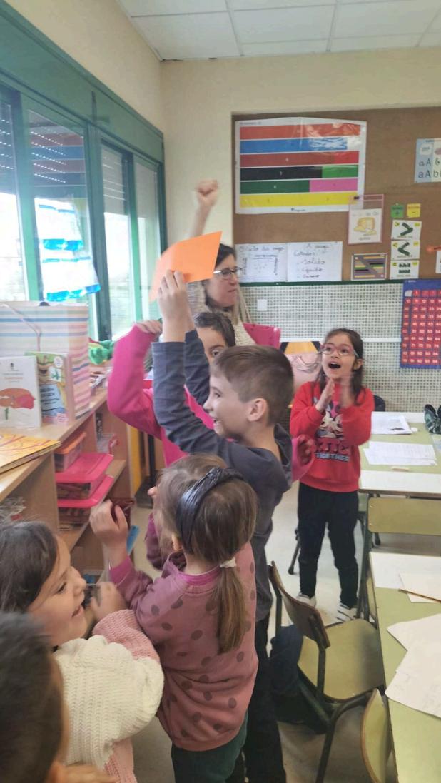 Tentalibros sorprendeu a todo o alumnado do cole cuns retos a resolver basados nun poema de Anxo Iglesias do libro "Unha nova dimensión".