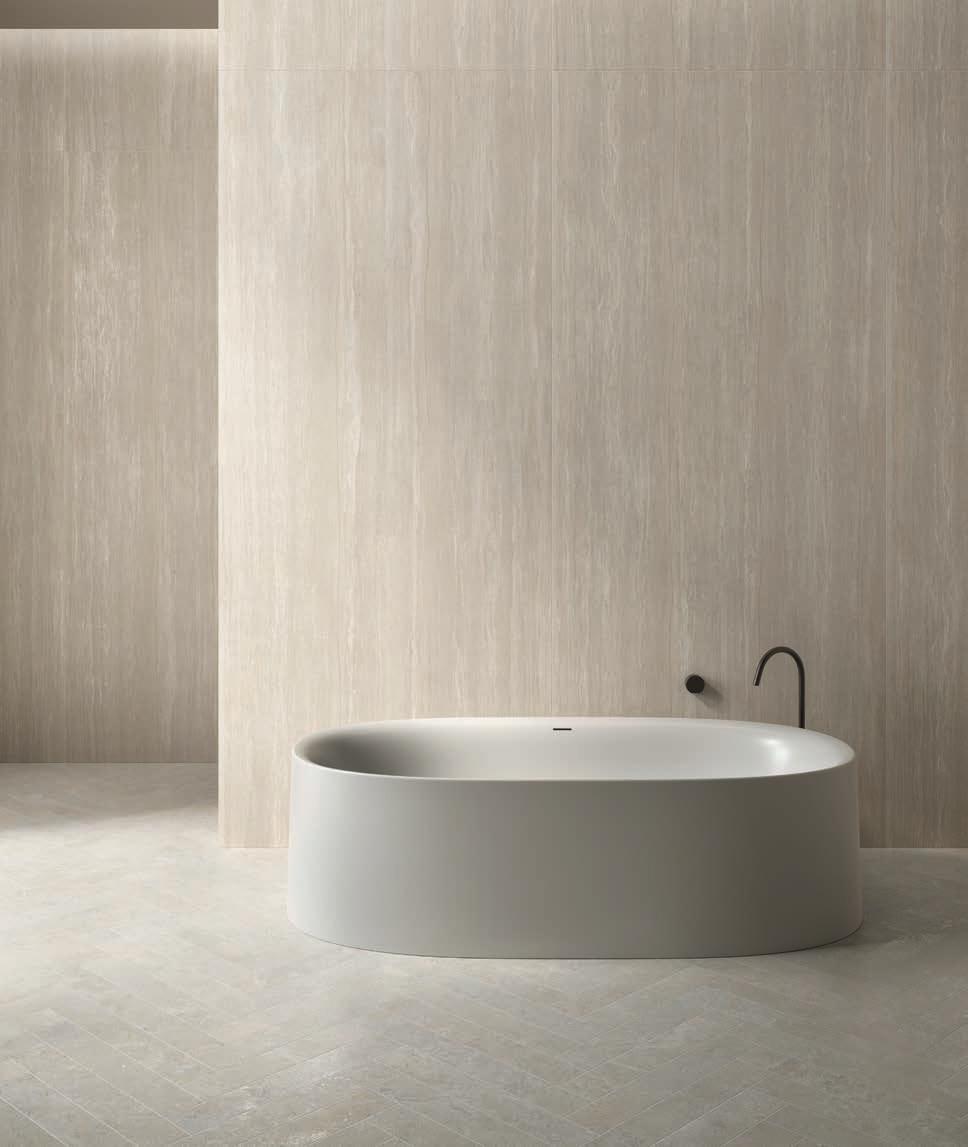 The beauty of limestone, sourced from the seabed where it has been shaped over time by water, with its rich coloring and small imperfections making it a unique and timeless material, has been masterfully recreated in this new collection.