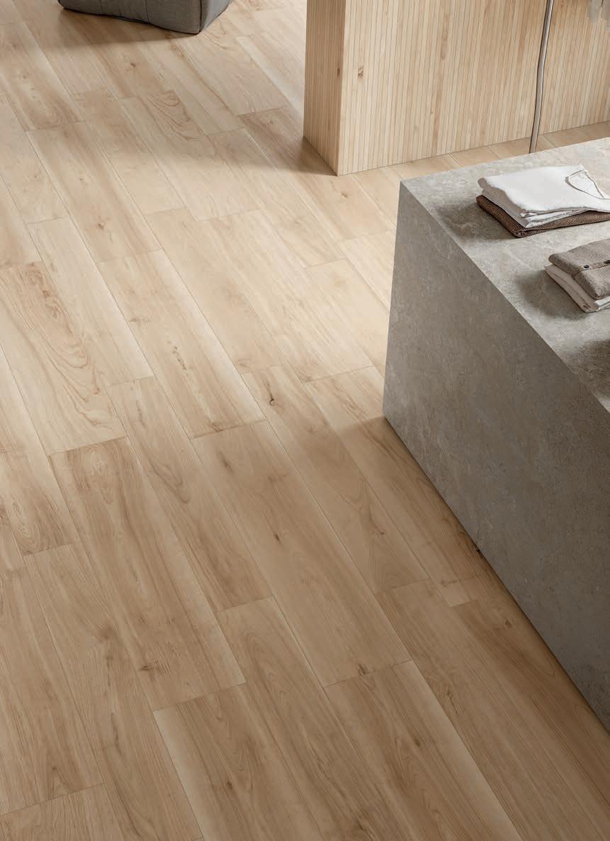 Caldo e autentico, con una nuance più chiara e venature mosse che donano dinamismo alla superficie. Un tocco naturale che sa di casa.