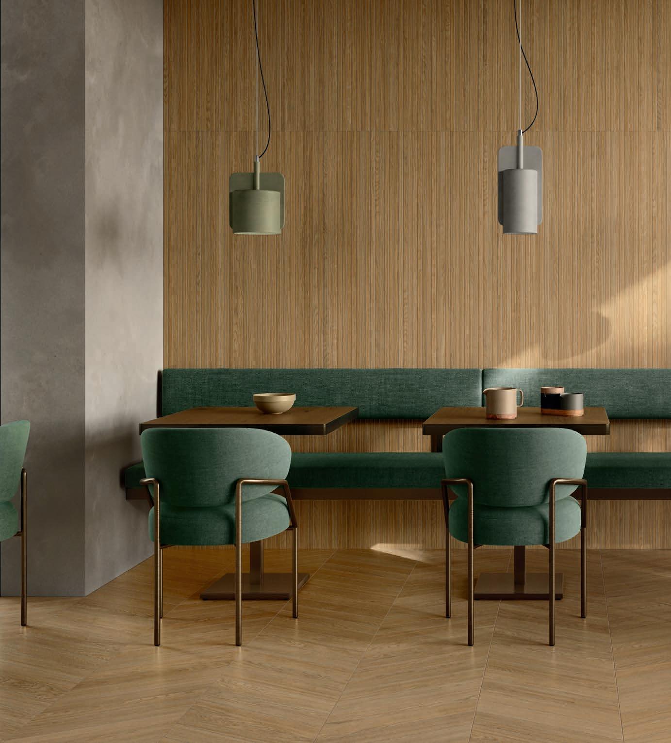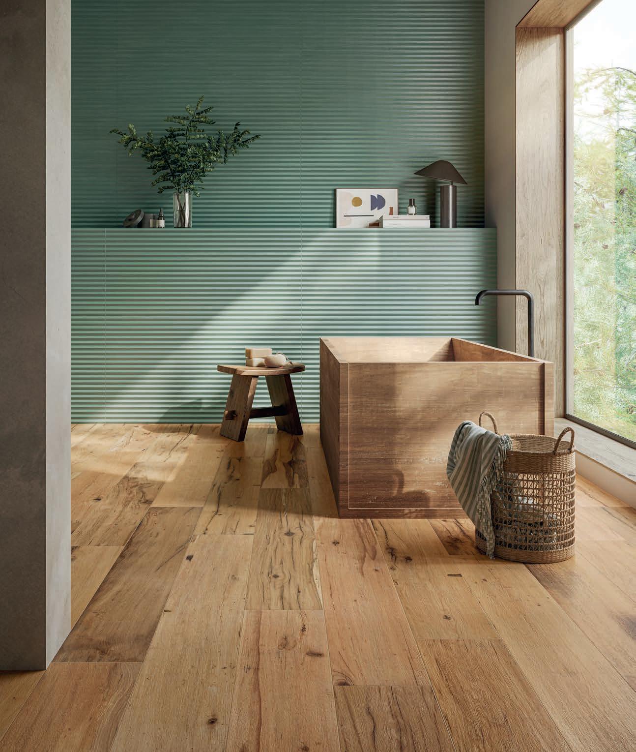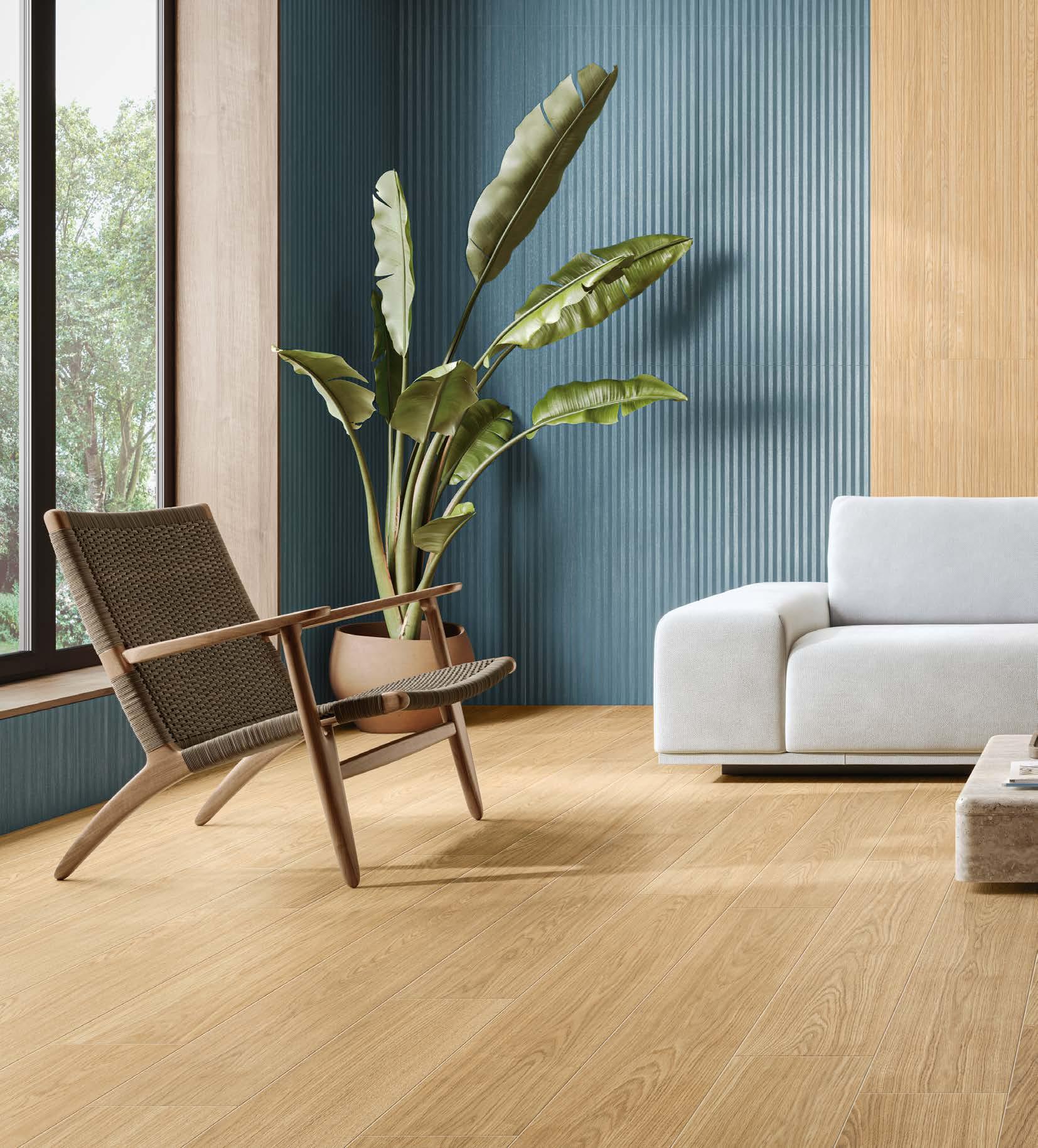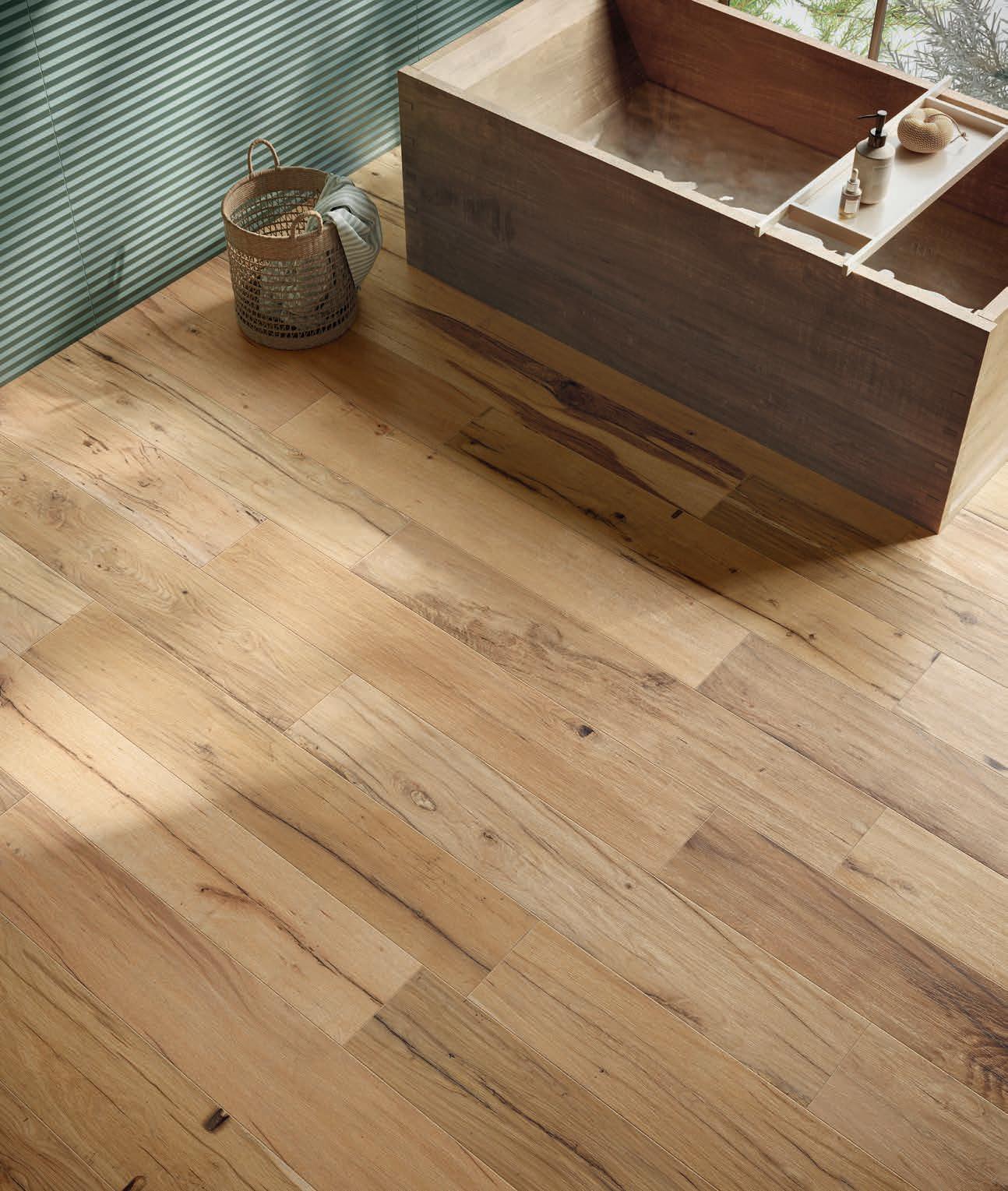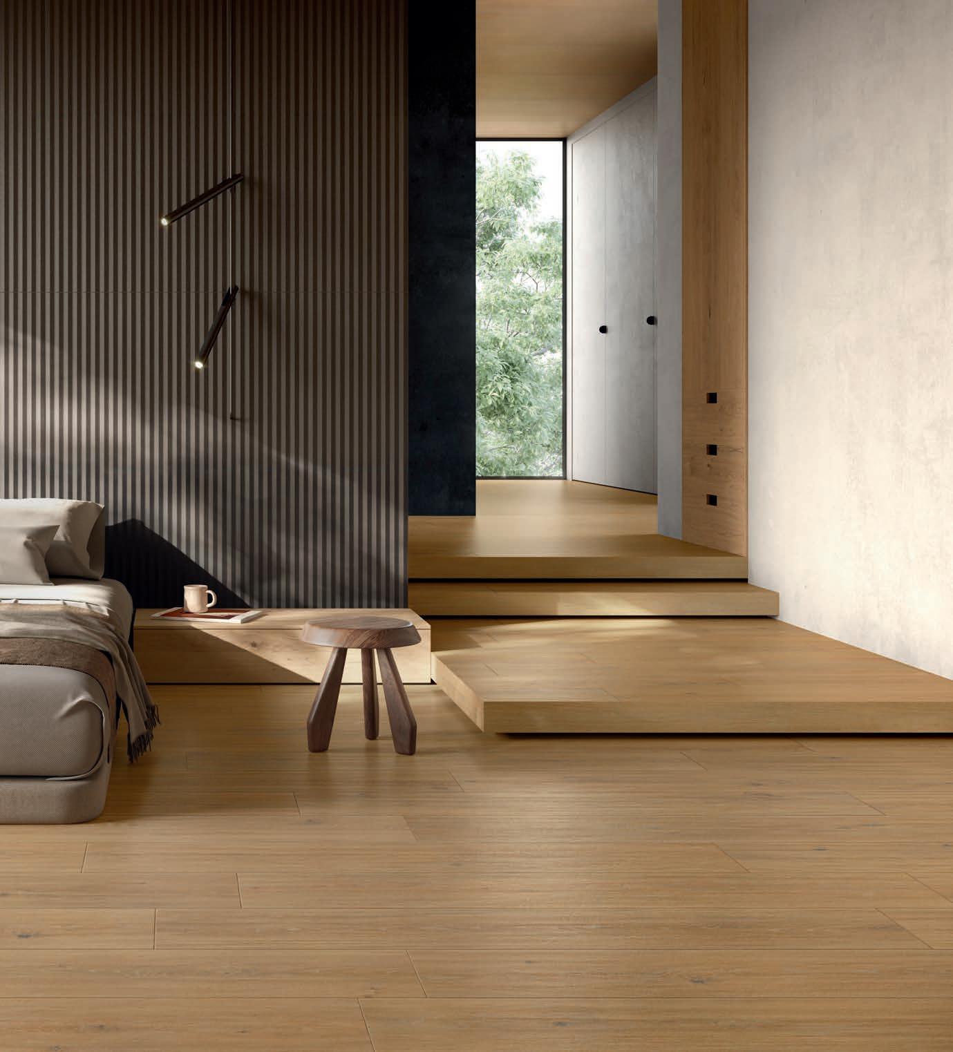 Quattro le varianti di doghe in gres porcellanato: Pure, Flamed, Loft e Vintage che danno vita a un design versatile.