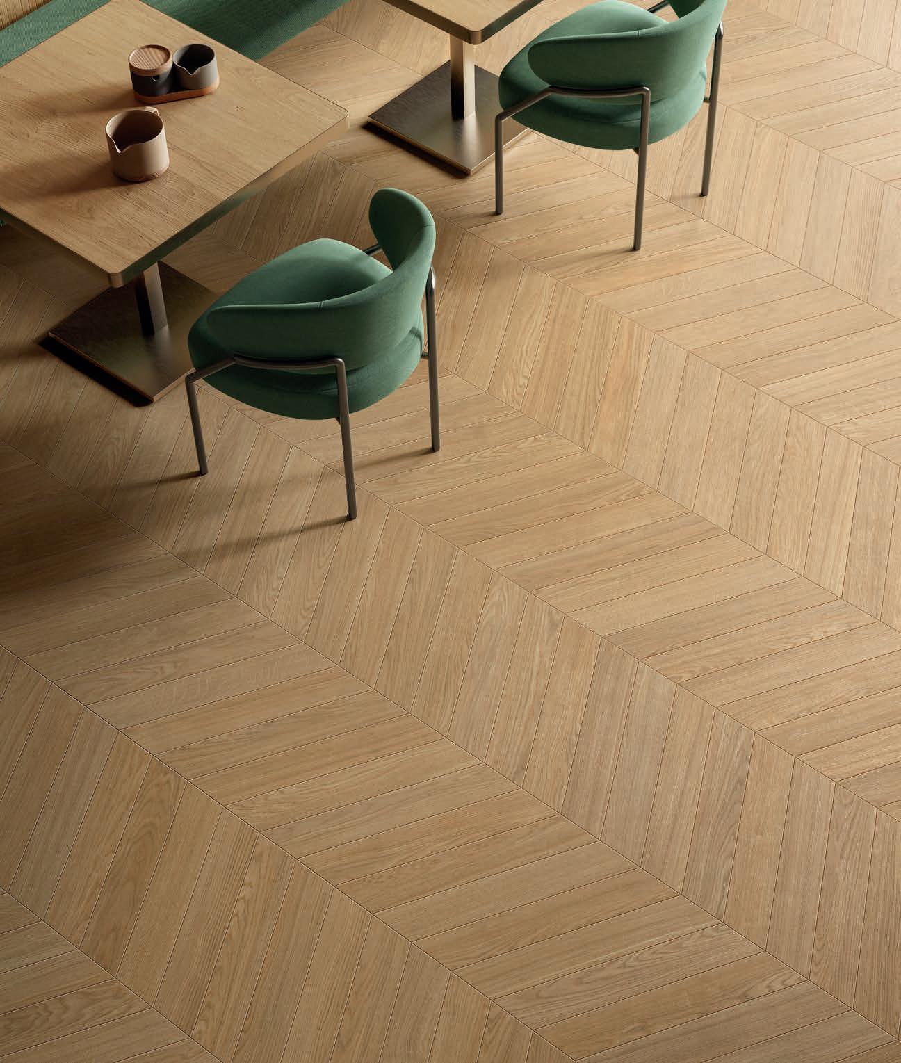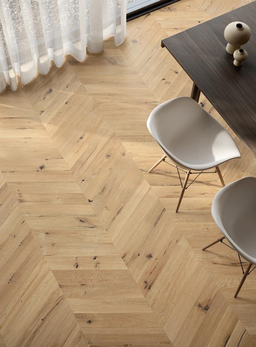 Der klassische und zeitlose Stil der ChevronVerlegung wird in der Solorovere-Kollektion neu interpretiert.