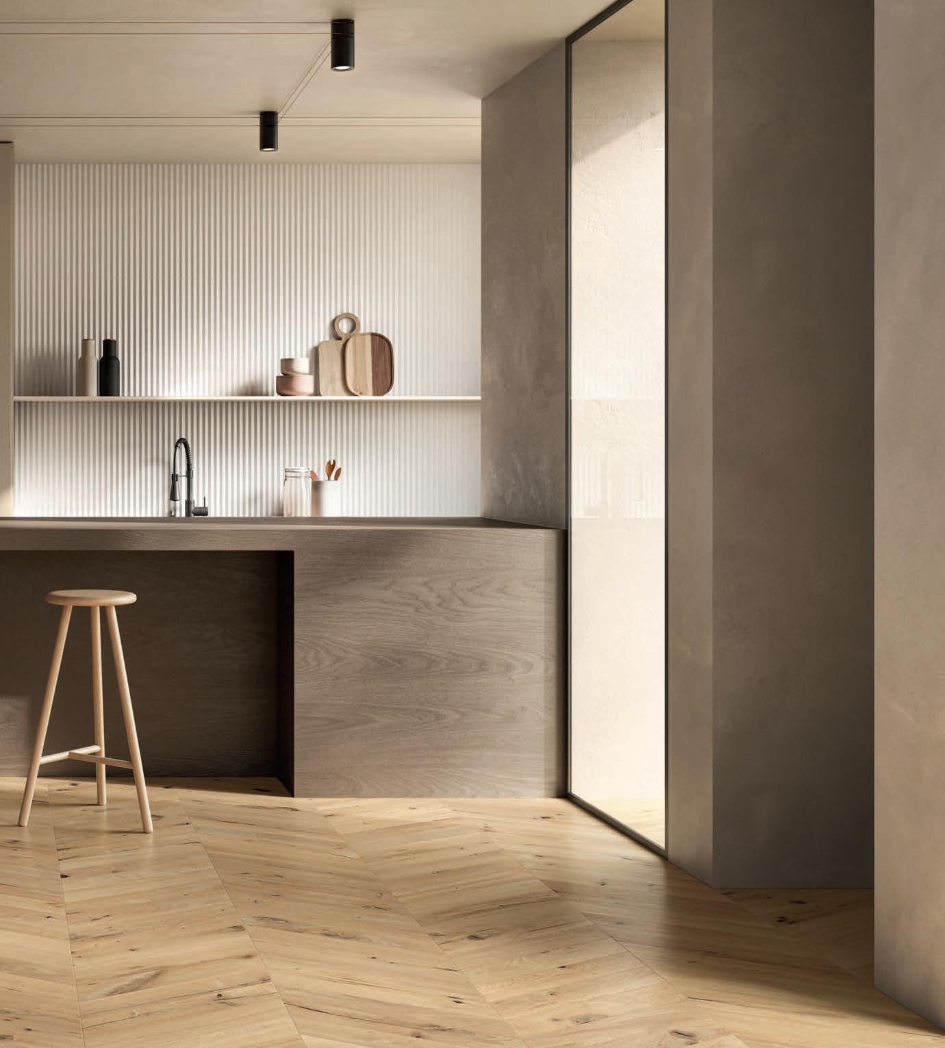 10×53 - 4”×20” Loft Chevron Naturale Rettificato 60×120 - 24”×48” Homey Canneté Cotton Naturale Rettificato