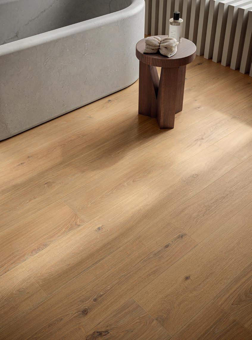 Solorovere, une collection de lames parquet en grès cérame qui exprime l’essence du chêne en quatre variantes différentes.