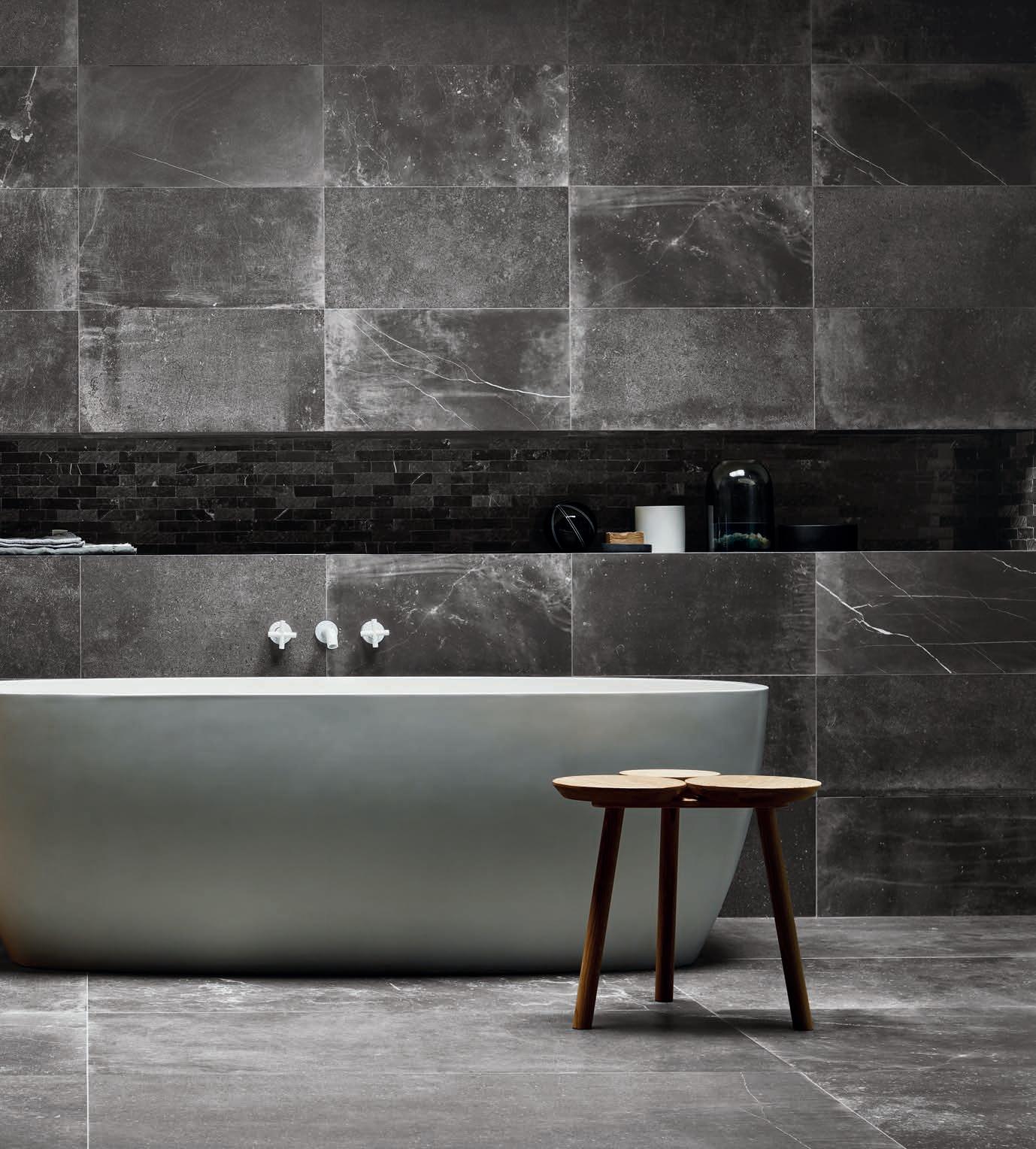 Una collezione ispirata all’estetica di pietre, graniti e marmi differenti sapientemente miscelati tra di loro per muovere con carattere lo stile di ogni ambiente, residenziale o commerciale.