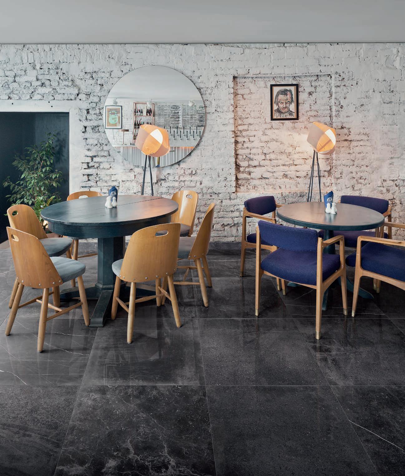 A collection inspired by the aesthetics of different stones, granites and marbles, skilfully mixed together liven up the style of every environment, whether residential or commercial.