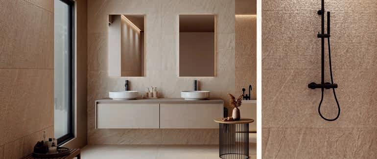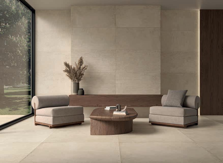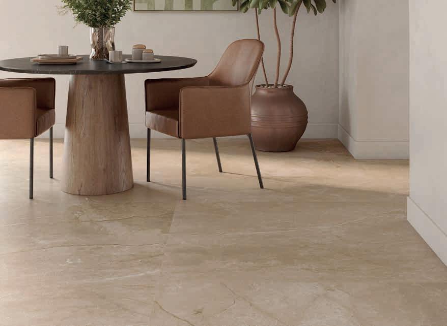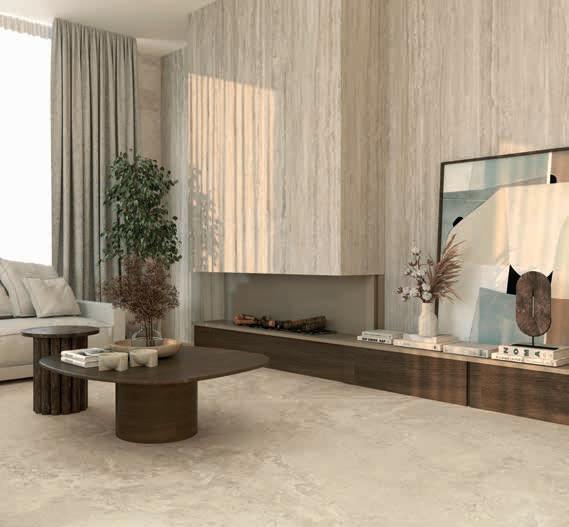 En esta tendencia cobra especial protagonismo la materia, la memoria mineral, la geología o los estratos en las superficies. Se busca la memoria primitiva de los materiales naturales, con paletas de color terrosas y texturas imperfectas o sedimentos capaces de expresar el lado más auténtico de la materia. También tienen cabida las gráficas de biofilia, las texturas naturales o piezas con fragmentos de distintos materiales. Es un regreso a las raíces que mantiene una estrecha relación con el concepto de Natural Living, un estilo de vida que celebra la conexión con la naturaleza y el bienestar emocional. La cerámica se convierte así en un lenguaje primordial, capaz de traducir la fuerza de la tierra en espacios habitables.