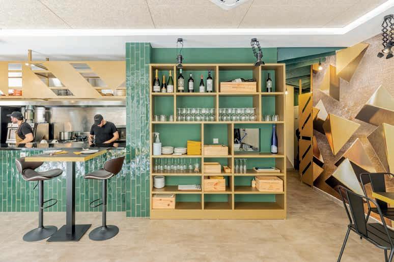 DECOCER / Taberna & Bar Trenkaclosques (Castelló de la Plana, España) / Colección Devon, jade 7,5x30 cm. y colección Origami, beige, 17,5x20 cm. / Estudio de arquitectura: Armonic Consultores / Foto: Decocer.