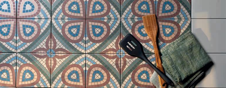 La tendencia Heritage Play deposita una profunda confianza en el pasado y reinterpreta símbolos históricos con un enfoque creativo y experimental. La nostalgia como refugio, como recuerdos reconfortantes del pasado. Así, los patrones tradicionales y los códigos artesanales transforman los ambientes dotándolos de confort. La cerámica es la base narrativa, con su color, textura y diseño, con patrones del pasado que se reinterpretan para proyectos contemporáneos. Propuestas que integran tecnología, tradición y emoción. Los colores son vibrantes, saturados, con acabados vítreos y mates.