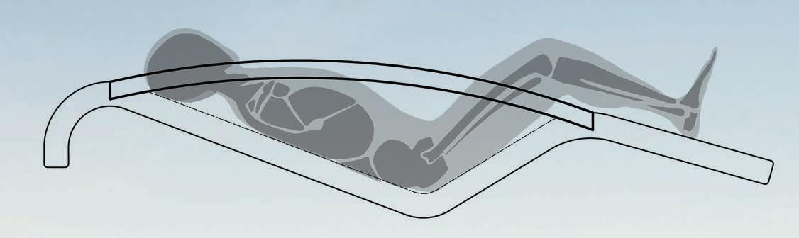 Enestaposición,elpesosedistribuye equitativamente,reduciendolapresiónen zonasespecíficasyfacilitandolarelajación muscular.Eldiseñopermiteunaalineación naturaldelcuerpo,loquereducelas tensionesdeéste.