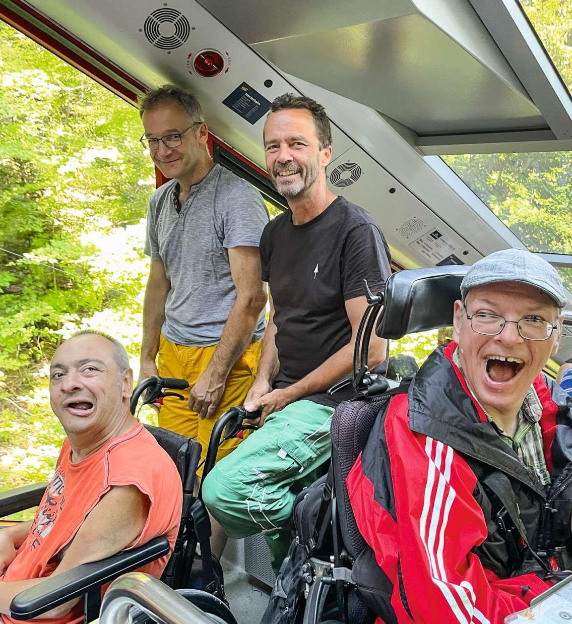 Ferien in kleineren und grösseren Gruppen in der Schweiz Zwei Gründe führten dazu, dass wir uns im Berichtsjahr nochmals für Ferien in der Schweiz entschieden: Einerseits die Planungsunsicherheit mit dem Risiko, Gruppenferien im Ausland nochmals wegen Corona absagen zu müssen Andererseits viele positive Rückmeldungen zu den Schweizferien Dank unserem Team von erfahrenen Reiseleiterinnen und Reiseleitern und Pflegeleiterinnen und dem zuvorkommenden Hotelpersonal, das unsere Klientel kennt, waren die Ferien am Bodensee und in Interlaken rasch gebucht Viel komplizierter gestaltete sich dieses Mal die Suche nach freiwilligen Assistenzpersonen Aus diesem Grund mussten wir leider auch mehreren Gästen absagen Auch ein Angebot für eine französisch sprechende Gruppe anfangs August kam leider nicht zustande Dafür genossen drei Gäste mit Hilfe der Vereinigung Cerebral Schweiz individuelle Ferien im Südtirol Eine weitere Kleingruppe von drei Gästen reiste mit unserer finanziellen Unterstützung nach Barcelona Zwei Gästen ermöglichten wir mit der Übernahme der Betreuungskosten Ferien in Teneriffa im Mai mit Procap