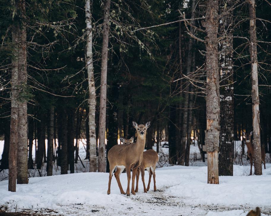 Le chevreuil est une espèce de cervidés européens et asiatiques, du sous-ordre des ruminants, qui vit dans les forêts de feuillus ou mixtes. Certains propriétaires de lots boisés privés nourrissent les chevreuils avec de la moulée, des pommes et surtout du trèfle rouge. En vous baladant dans les rangs 5 & 6 ainsi que 7 & 8, vous aurez peut-être la chance de croiser des chevreuils... et même de les nourrir ! N’oubliez pas d’apporter des pommes et des carottes coupées — ils en raffolent