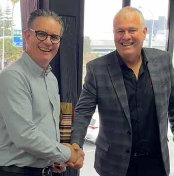 NZCB Board Chairperson, Nick Farrelly (right), recently extended congratulations on behalf of the NZCB Board to NZCB Chief Executive Malcolm Fleming (left), in celebration of his twoyear anniversary with the Association.