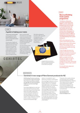 Cemintel: A new range of Fibre Cement products for NZ CSR Building Products continues to increase the range of Cemintel® Fibre Cement products available through Mitre 10, with CeminSeal® Wallboard and Cemintel Rigid Air Barrier. CeminSeal Wallboard is a wet area internal lining Fibre Cement sheet. Cemintel’s unique CeminSeal water block technology repels water and increases paint adhesion. It has been applied to the face of CeminSeal Wallboard panels for superior water resistance. Available in 6mm and 9mm thickness in Square and Recessed Edge