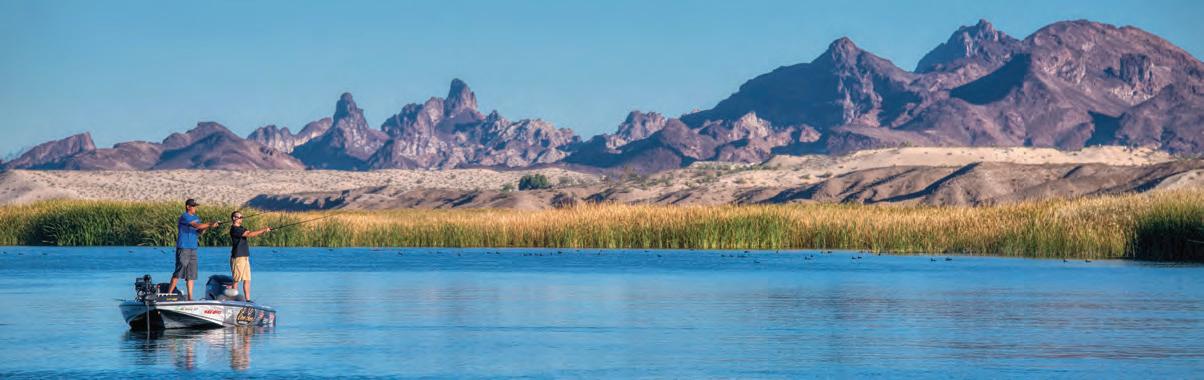 A valid Arizona or a California fishing license with a Colorado River stamp is required for anglers who are at least 10 years of age (blind residents are exempt) to fish on either state’s shoreline and the waters in between. Annual Arizona fishing licenses are $37 for residents and $55 for nonresidents. Daily licenses are $15 for residents and $20 for nonresidents. Licenses/stamps are available online at azgfd.com/license and some local fishing supply stores.