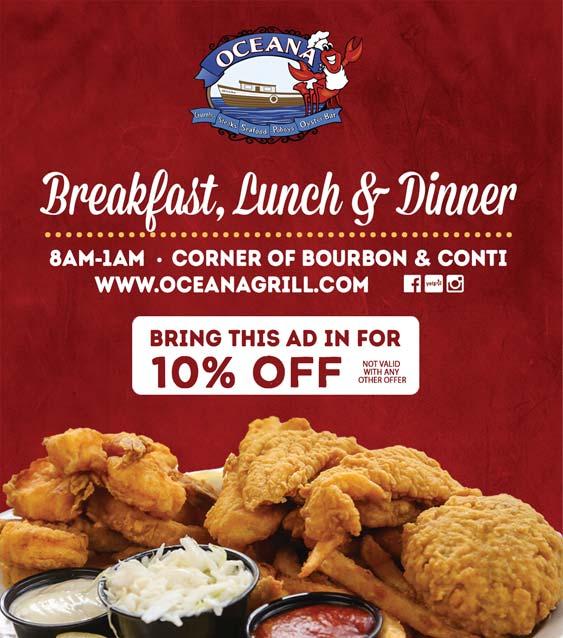 Lake Pontchartrain Municipal Yacht Harbor MississippiRiver MississippiRiver Intracoastal Waterway IntracoastalWaterway Lake Pontchartrain Cswy JoeYenniBlvd Loyola Dr W Loyola Dr E Loyola Dr Williams Blvd Vintage Dr Chateau Blvd Vintage Dr 43rd St FolseDr 39th St AvronBlvd Kent Ave Transcontinental Dr Esplanade Ave Power Blvd Clearview Pkwy Lake Ave Causeway Blvd Bonnabel Blvd Esplanade Ave HaringRd AcademyDr Hudson St Severn Ave Severn Ave Cleary Ave Cleary Ave Oaklawn Dr Kawanee Ave Airport Access Rd David Dr Veterans Memorial Blvd Veterans Memorial Blvd Roosevelt Blvd 27th St Napoleon Ave Houma Blvd Lafreniere St 19thSt Metairie Ave Camphor St KennerAve Filmore St Hickory Ave 3rdSt Central Ave LittleFarmsAve Earhart Expy Earhart Expy SauveRd Jefferson Hwy Deckbar Ave CitrusBlvd RiverRd RiverRd RiverRd Elmwood Park Blvd Kenner Ave Colonial Club Dr Franklin Ave BridgeCityAve Terry Pkwy HamiltonSt1stSt5thSt AvondaleGardenRd Wright Ave 4th St 4thSt 11thSt 11thSt Whitney Ave ManhattanBlvd GretnaBlvd LouisianaSt Destrehan Ave 8thSt Peters Rd Mystic Ave BelleChasseHwy LapalcoBlvd LapalcoBlvd LapalcoBlvd Barataria Blvd VictoryDr Westwood Dr Ames Blvd 15th St August Ln Patriot St Harvey Blvd HayneBlvd ParisRd BullardAve MorrisonRd LakeForestBlvd ReadBlvd Crowder Blvd MayoRd Wright Rd Dwyer Rd DwyerRd Lakeshore Dr Downman Rd Leon C Simon Dr BundyRd Elysian Fields Ave Marconi Dr Peoples Ave Franklin Ave Paris Ave Jourdan Rd Canal Blvd Saint BernardAve Robert E Lee Blvd Robert E Lee Blvd Wilson Ave Pontchartrain Blvd Milne Blvd Bellaire Dr Prentiss Ave Wisner Blvd Filmore Ave Almonaster Ave Almonaster Ave Mirabeau Ave Harrison Ave France Rd VirgilBlvd Gentilly Blvd Orleans Ave BenefitSt FloridaAve AbundanceSt City Park Ave EsplanadeAve CanalSt GalvezSt GalvezSt Jourdan Ave Andry St Alabo St BanksSt Poland Ave PalmSt CarrolltonAve DelerySt MonticelloAve SaintClaudeAve EarhartBlvd EarhartBlvd WashingtonAve ChartresSt DauphineSt FontainebleauDr ClaiborneAve PattersonDr Behrman Ave Merrill St General Collins Ave GeneralMeyerAve Wall Blvd Magaz n Kabel Dr GeneralDegaulleDr Woodland Dr Sullen Pl Berkley Dr Lennox Blvd Maumus Ave Behrman Hwy Woodland Hwy EngineersRd PatriciaSt AngelaSt JudgePerezDr JudgePerezDr GenieSt SaintBernardHwy Saint Bernard Hwy Stump B vd O Gent lyRd Ma a hu Bvd Caro S e A e Leake Ave Fre St WillowSt Tc o p tou a Napoleon Ave State St Louisiana Ave SaintCharlesAve Airline Hwy Jefferson Hwy HueyPLongBridge WestbankExpy ChefMenteurHwy TulaneAve ParisRd WestbankExwy Scarsdale Waggaman Pond FRENCH QUARTER & DOWNTOWN NEW ORLEANS Audubon Zoo SUPPORT THESE PARTNERS Waggaman Avondale Harahan Kenner Jefferson Metairie River Ridge Westwego Marrero Harvey Gretna Terrytown Braithwaite Meraux Arabi Chalmette Chalmette NHP Audubon Park New Orleans City Park West End Park Bridge City BUS 90 BUS 90 18 541 39 23 406 46 47 541 18 48 48 MAP NOT TO SCALE 10 510 610 10 10 10 10 90 90 University of New Orleans University of New Orleans East Tulane University Research Lab Southern University Dillard University New Orleans Lakefront Airport Louis Armstrong New Orleans International Airport ORLEANS New e Louisiana o Loyola University Tulane University 61 90 61 LEGEND HOSPITAL SCHOOL AIRPORT 90 3 10 6 To Destrehan Plantation 10.9 Miles 4 FrenchMktNOLA French Market New Orleans LEARN MORE @ FRENCHMARKET.ORG SHOPPING • RESTAURANTS • EVENTS IN THE HEART OF THE FRENCH QUARTER SIX HISTORIC BLOCKS OPEN DAILY! DISCOVER e DISTRICT! RATED #1 ON GOOGLE AT 317 BURGUNDY ST. FRENCH QUARTER LOCATED IN THE MAKE YOUR RESERVATION TODAY! BICYCLE TOURS & RENTALS 504.522.4368 CALLUS! BikeRentalNewOrleans.com 24HOURRETURNSRENTAL NewOrleansBikeTour.com AttractionDeals.com Find the Best Attraction Deals in New Orleans AttractionDeals.com Beer Bus Pick up at multiple locations New Orleans (504) 264-3474 NolaBeerBus.com City of Gretna Welcome Center 1035 Huey P. Long Avenue Gretna (504) 363-1580 or (888) 447-3862 GretnaLA.com Destrehan Plantation 13034 River Road Destrehan (985) 764-8785 DestrehanPlantation.org 1 2 3 4 Oceana Grill 739 Conti Street New Orleans (504) 525-6002 OceanaGrill.com Sassy Magick Noir Located at 2 Locations: 1301 Decatur Street New Orleans (504) 354-1165 840 Royal Street New Orleans (504) 354-1827 SassyMagick.com 11 12 The French Market 1100 North Peters Street New Orleans (504) 636-6400 FrenchMarket.org Haunted History Tours Tours Meet at Various Locations New Orleans (504) 861-2727 HauntedHistoryTours.com JAMNOLA 2832 Royal Street New Orleans Info@jamnola.com JAMNOLA.com 8 9 10 5 Gravier Street Massage 940 Gravier Street New Orleans (504) 982-8808 HELI CO. New Orleans 6001 Stars and Stripes Boulevard, Suite 148 New Orleans (504) 291-8999 Heli-Co.com FRENCH QUARTER Free Wheelin’ Bike Tours & Rentals 317 Burgundy Street New Orleans (504) 522-4368 NewOrleansBikeTour.com 6 7 LoyoaAve Mo ga St u ne A e C a o pe S t A e M Sha P P o yd a S t C o p M e pomene A BounySt a S Tchouptoula St D u S Pr S C a op eS E k P Cal p S H w a r A E p d A PattersonSt O e SA on Av Fr re S D C iSt esA Univer tyP lereS SA h yS p ge tS oy sP a Er lS A d ew H nsDr B li rS N ntS Pe nS B eS CaraS OfN l S Tou meS ie eS NVile S S St A eP C LaSalleS N M P S D a ond S C zat St C ns nce SDer ig S C mm St D la d S M yS h Ch hlCh e S ad StW S eSt Te ho e S C m C pdevill e S N Rober C nd S S mpar SMaes rec S C rr S S b L yS Bo y Ba o n M ignyS Ol S Lav rg S A S S g Decau S GaiennieS Paug S C V lere SDerb St N Dam St tog G v St Flto S is S NPete S B lio S Roberts St rps ho e AmannSt Co s S re h A C raS O eefeAve W St Ca o d S Laf yetteS C an St S e ph S t ha B rgundy t gle J a S M lp e Seg u S C nSt C St N h zSt B m nS ND R sonSt ib Ma ul S G rod Ib S Ch chSt M gnol A St H eDe eS SPetersSt S ug Bow D la St M d il rS E uterp W NR mpa St N D o d S V S rdid U quha S B g dy S PoeS Be d C Cha sSt S Dix D M lia A nett S ober St d S Fr et St NVillere St le Eu erp S F ankl A C mme lP G N ch St P ay P M O rl Av p St e y a Un S C A SRo O H C p W l