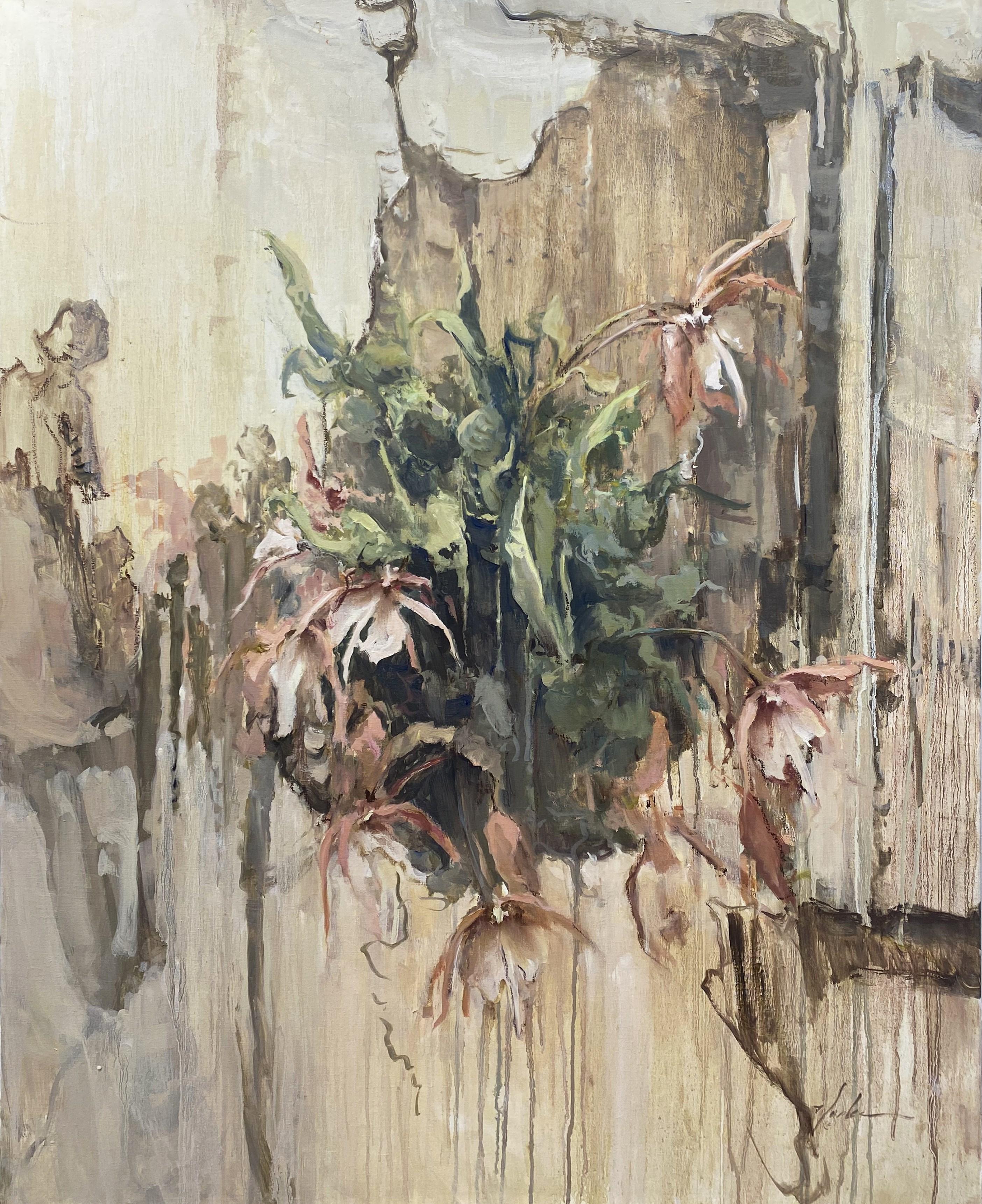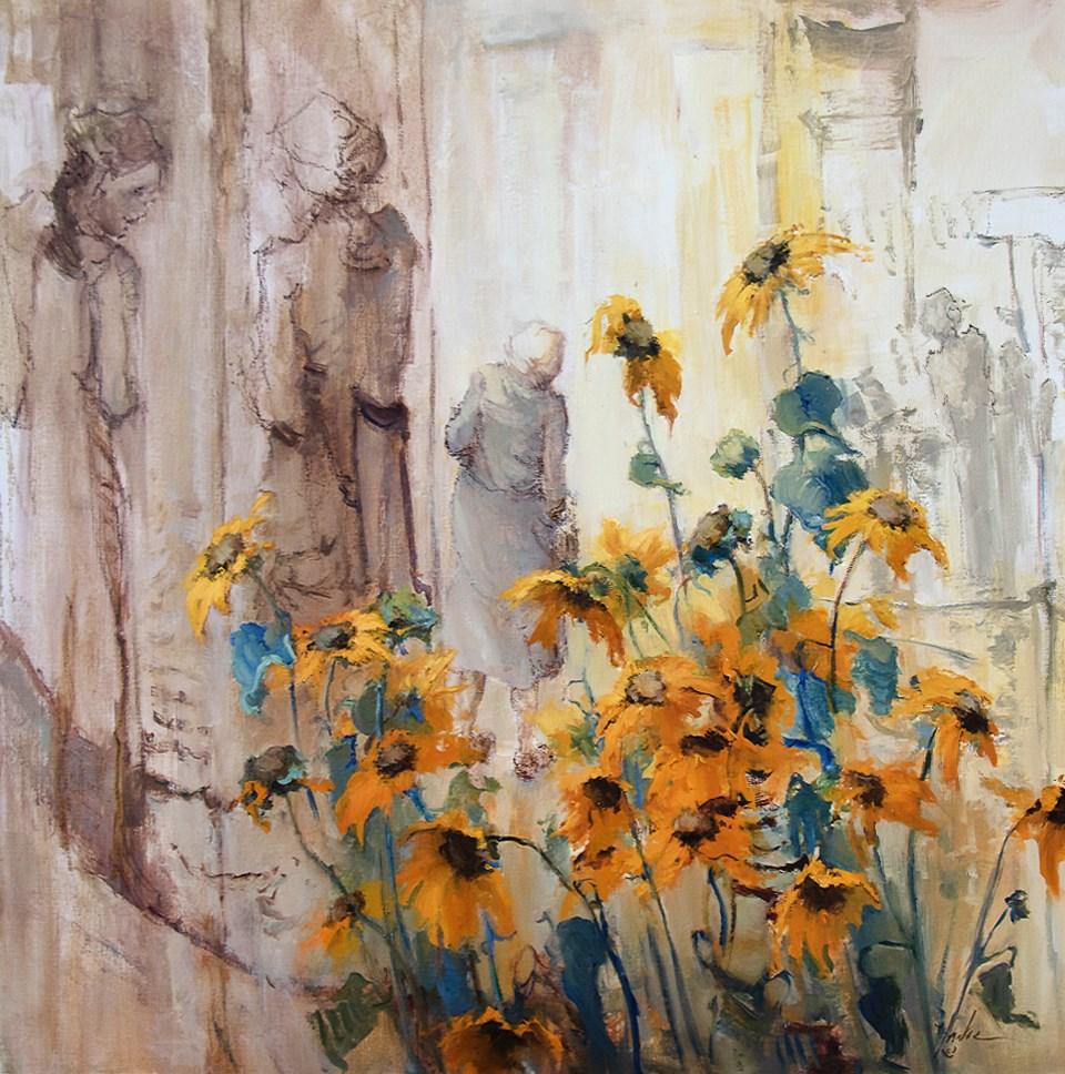 Survivors,awildlowlysunflower,theaging figure,goingthroughthecycles.AsIage,I ammoreawareofcyclesinnatureandthe relationshipstousall.Arewenotina