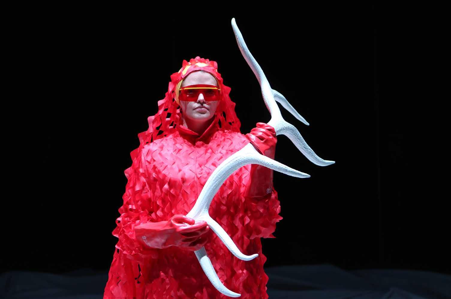 La dirección artística de Kirsten Dehlholm, fundadora de Hotel Pro Forma, traza un escenario en perpetua mutación, suspendido entre la era geológica y la digital. La música del británico Andy Stott y de Krists Auznieks prolonga esa tensión al tender un puente entre lo electrónico y lo coral, enlazando ecos ancestrales con lo futurista. A ello se suman las proyecciones, los paisajes virtuales y los vestuarios concebidos por Wali Mohammed Barrech, que conforman conjunto privilegiado de visiones que otorgan a la obra una cohesión orgánica en conjunto con el excelente trabajo de iluminación de Jesper Kongshaug. Gracias a este equipo, cada pasaje de NeoArctic se convierte en una inmersión sensorial: texturas visuales y sonoras que se vuelven casi palpables, como si nos encontráramos en una suerte de rave para el fin del mundo, donde belleza y desolación se funden en un mismo efecto hipnótico.