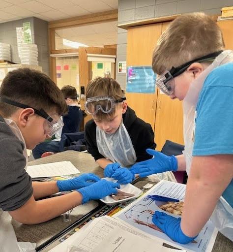 After a 7 year hiatus, frog dissection returned to the Jr High science curriculum with many eyes sparkling with anticipation Our 7th and 8th grade students worked in pairs as they explored the different organ systems of jumbo BullFrogs. A big thank you to former Randall and now retired Wilmot teacher, Steve Sproul, for leading the amphibian autopsy