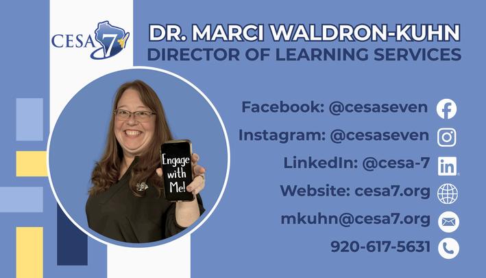 If there is something you do not see in this catalog, we encourage you to reach out Please contactDr.MarciWaldron-Kuhnatmkuhn@cesa7.orgorHeidiSeibertathseibert@cesa7.orgso wecancollaborateanddesignlearningexperiencesthatbestmeetyourneeds.Welookforward tocontinuingourworktogetherintheyearahead.
