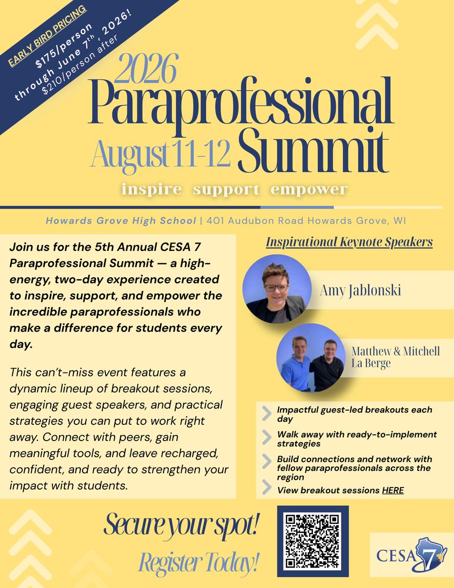Are you looking to boost funding, strengthen programming, or expand services? CESA 7 offers a robust suite of grant-services designed to empower districts and educators! Click HERE to learn more!
