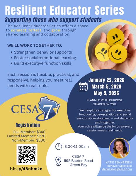 Exploreupcomingevents andlearningopportunities designedtosupportyour work,strengthenyour skills,andpromote ongoingprofessional development.Whether you’reaneducator, administrator,orsupport professional–there’s somethingfor everyone at CESA7!