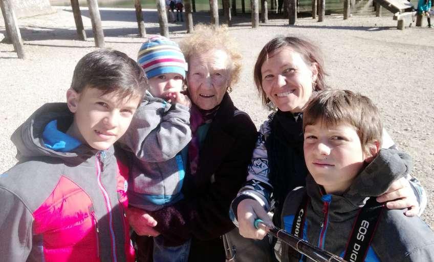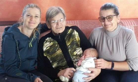 S. Gregorio (BL) - Il piccolo Sebastiano Pellin in braccio alla bisnonna Ursola, insieme alla nonna Beatrice e alla mamma Daniela.