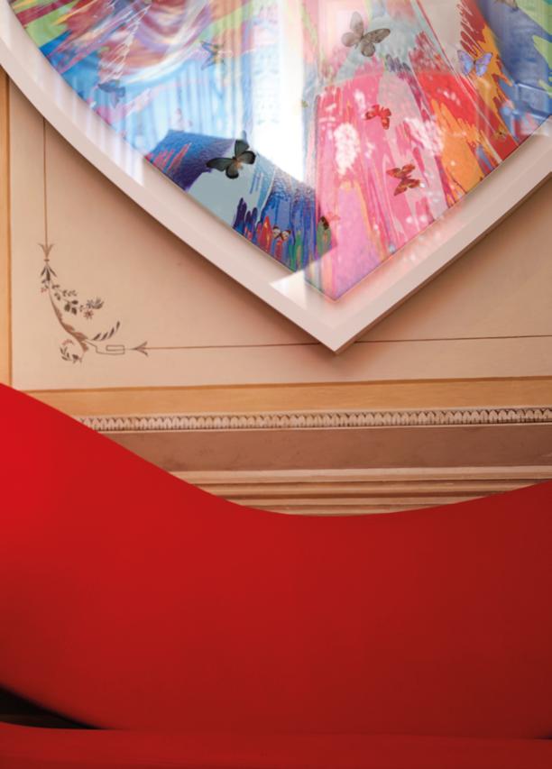 Inside, the villa hosts an unprecedented dialogue between eras:originalfrescoesandhistorical artifacts coexist with the visionary flair of Alessandro Mendini, the mindbehindtheinteriordesign.His signature—ironic and cultured— plays with bold colors, plastic forms, and stylistic references interwoven with 17th century with