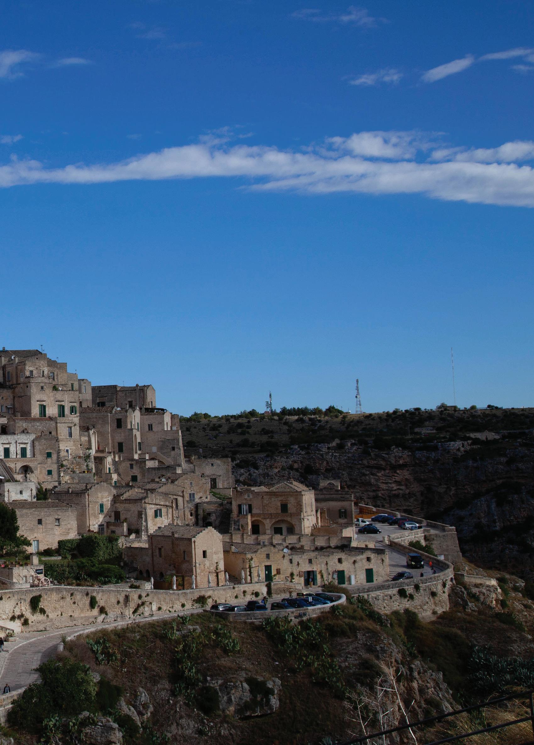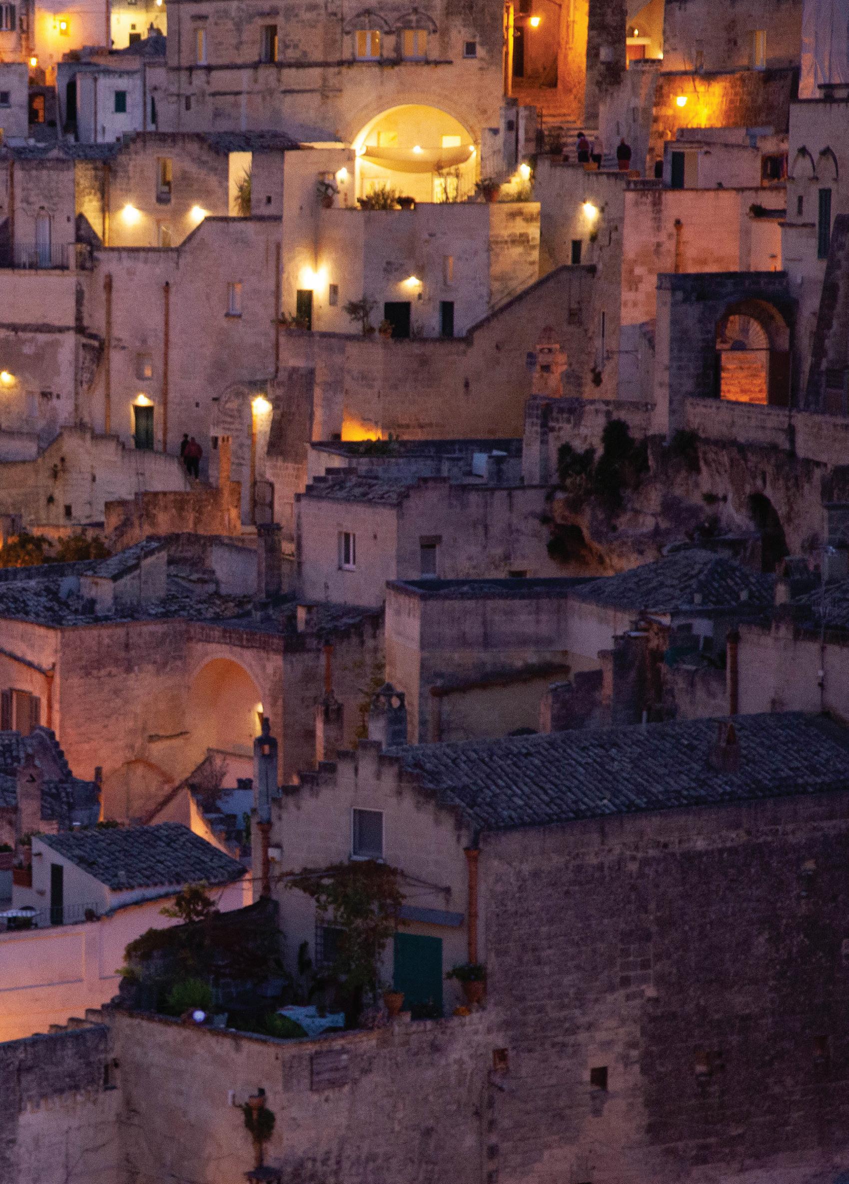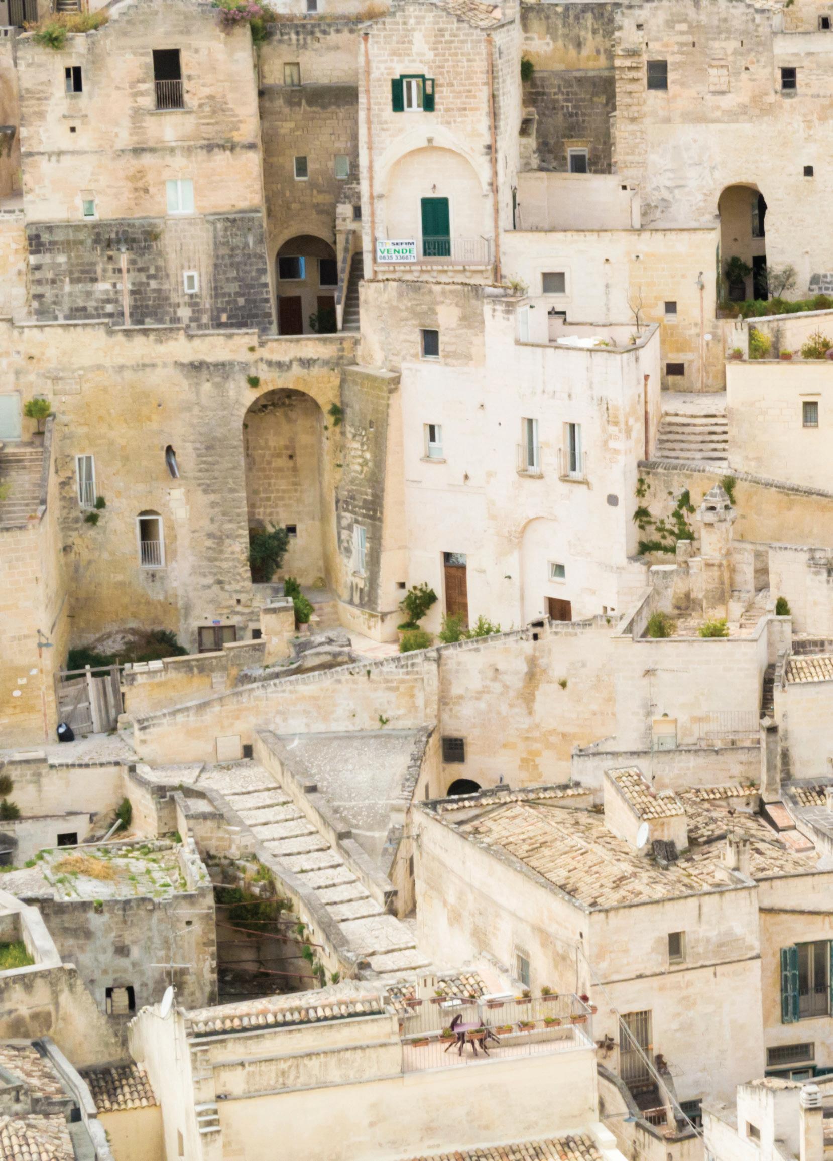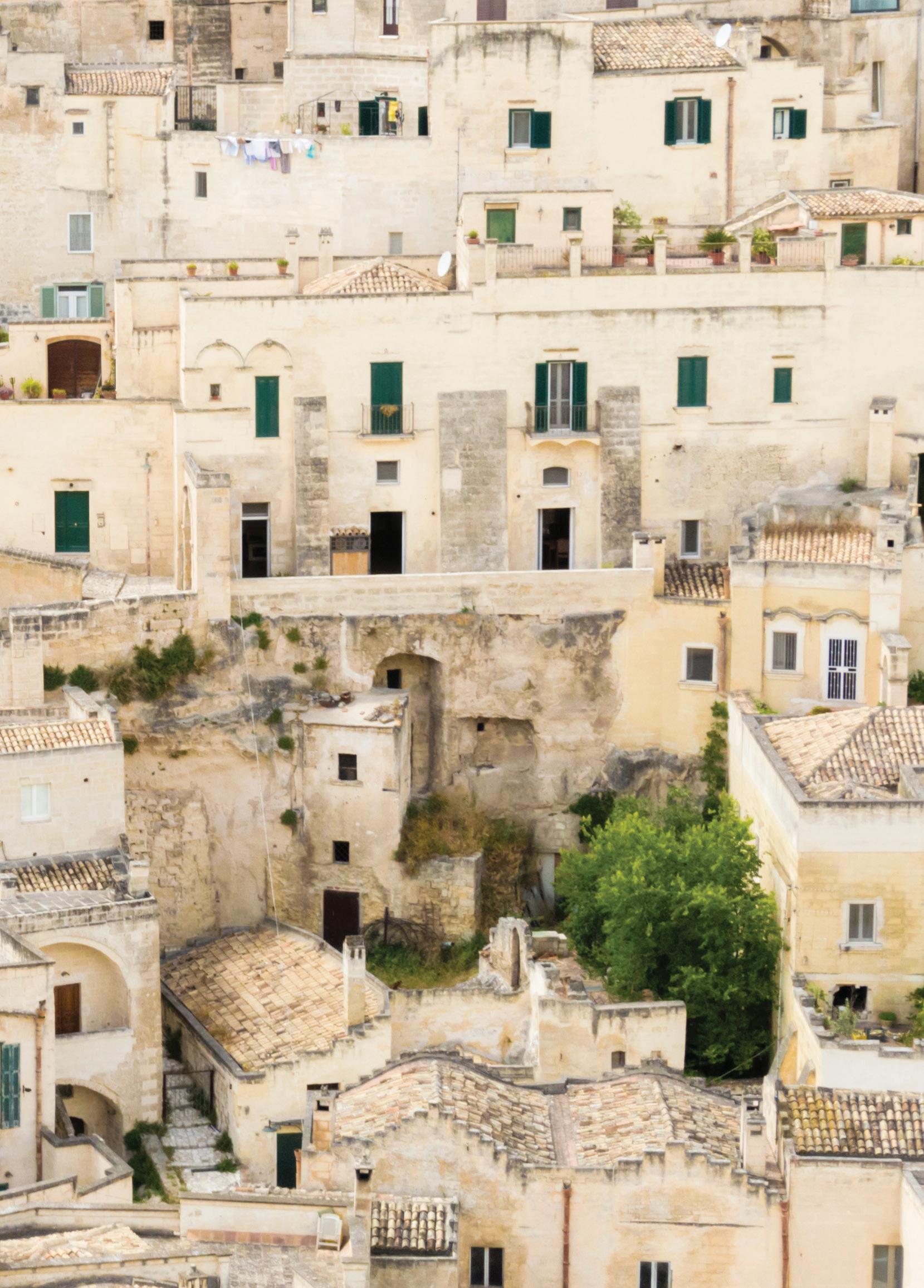 InthewordsofPulitzerPrize-winnerMichaelCunningham: “Matera is like a giant beehive–solid looking on the outside, butactuallymadeupalmostentirelyoftunnels,passageways, chambersandchambersatopchambers.Ifmostcitiesaspire to the erection of ever taller buildings, which speaks to our attemptstoreachforthesky,Materaspeakstoamoreprimal urgetobarrelintotheearthtobeheldandprotectedthere.”