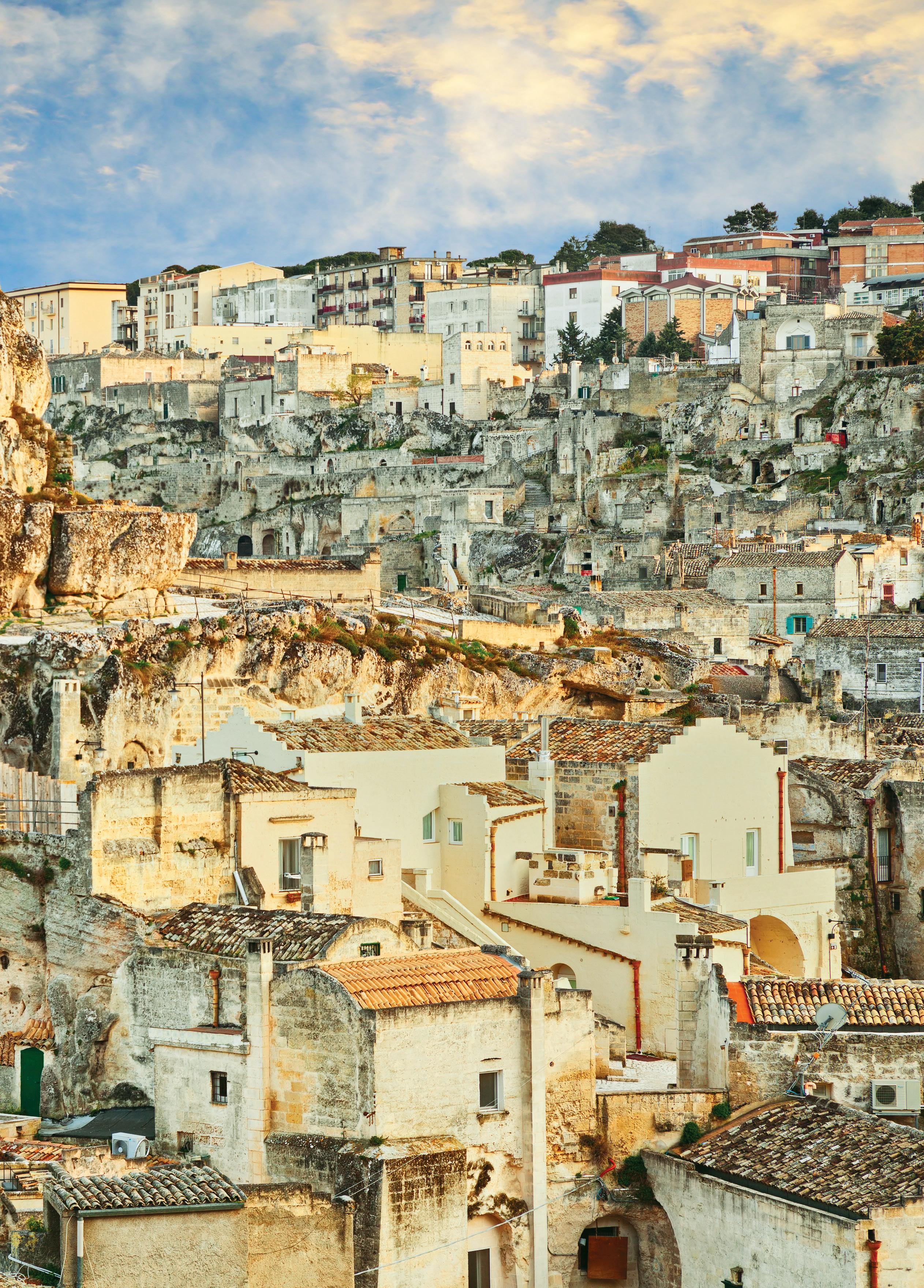 La storia di Matera inizia nella preistoria, come testimoniano i numerosi vasi in ceramica risalenti al Neolitico antico rinvenuti nelle grotte. Ai primi popoli nomadi che si affacciarono sulla Murgia ne seguirono altri dediti alla pastorizia che si stabilirono sul colle della Civita, fondando il primo nucleo della città. Dopo la caduta dell'Impero Romano d'Occidente e la riconquista degli imperatori bizantini, Matera fu a lungo sotto il controllo dei Longobardi e dei Saraceni, fino alla discesa dei Normanni in Italia nel 1042. È a questo periodo che risalgono le chiese rupestri che costellano il territorio della città, scavate nella roccia e decorate con affreschi ed elementi scultorei. Parallelamente al nucleo storico, dal XIII secolo iniziò a svilupparsi la città nuova di Matera, con rioni molto eleganti realizzati dai più noti architetti italiani. Superato lo stupore iniziale, provocato da questo suggestivo patrimonio culturale e architettonico unico, bisogna lasciarsi andare e addentrarsi tra vicoli e viuzze, per cogliere davvero l’identità unica di questa "seconda Betlemme". Il modo migliore è partire dal nucleo storico, i cosiddetti Sassi di Matera, i due quartieri dichiarati Patrimonio dell’Umanità Unesco, nel 1993.