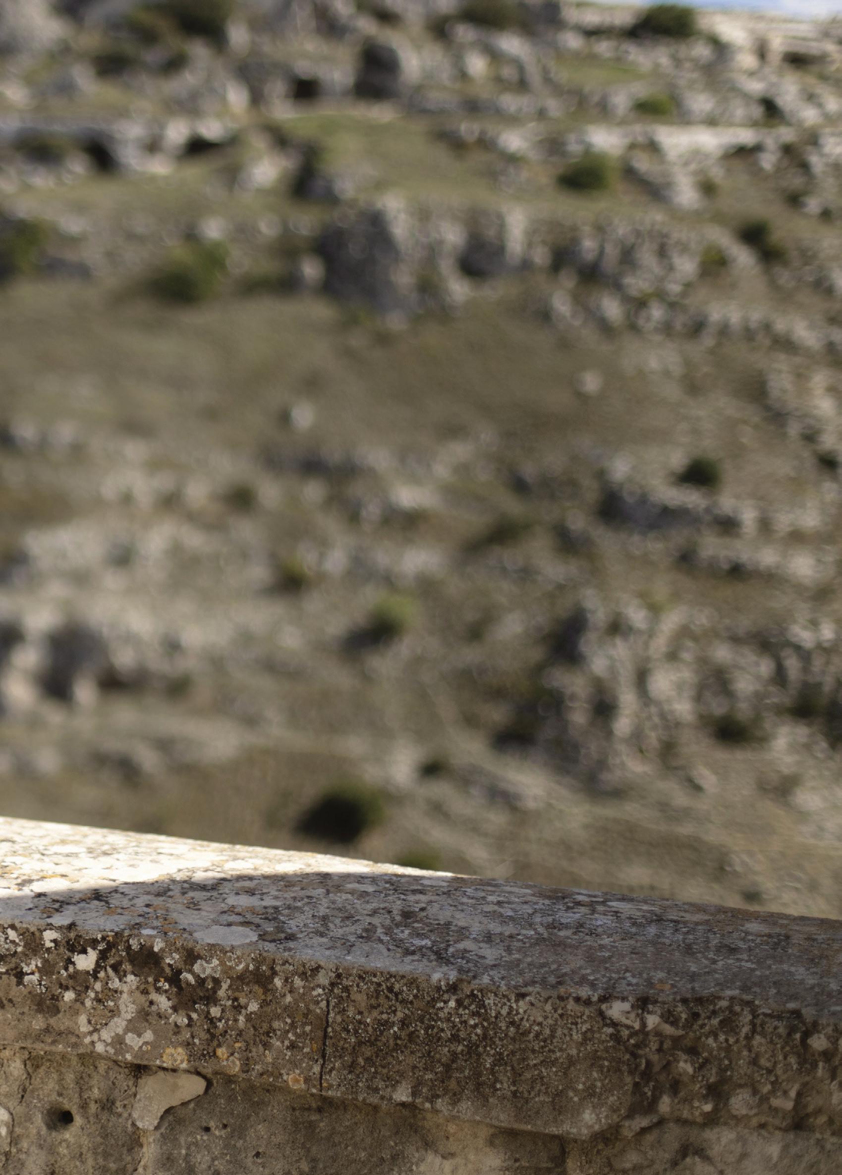 Matera is located in the Lucanian part of the Murgia,avastkarsticplateauwhosepredominant element is rock, hence its name from the Latin 'murex'. The earliest important prehistoric settlements and the ancient Sassi districts overlook the sheer drop down to the Gravina, a small watercourse that originates in Apulia and flows into the Bradano, in Basilicata. Over the millennia, this small river has gently carved out its bed and created numerous canyons (the so-called 'gravine') around it. The River Gravina separates the Sassi from the Murgia Materana Park and the Rupestrian Churches, a vast, very inhospitableareawithawealthofarchaeological sites, rupestrian churches (more than 150, some of which house perfectly preserved frescoes dating back to the Byzantine era) and