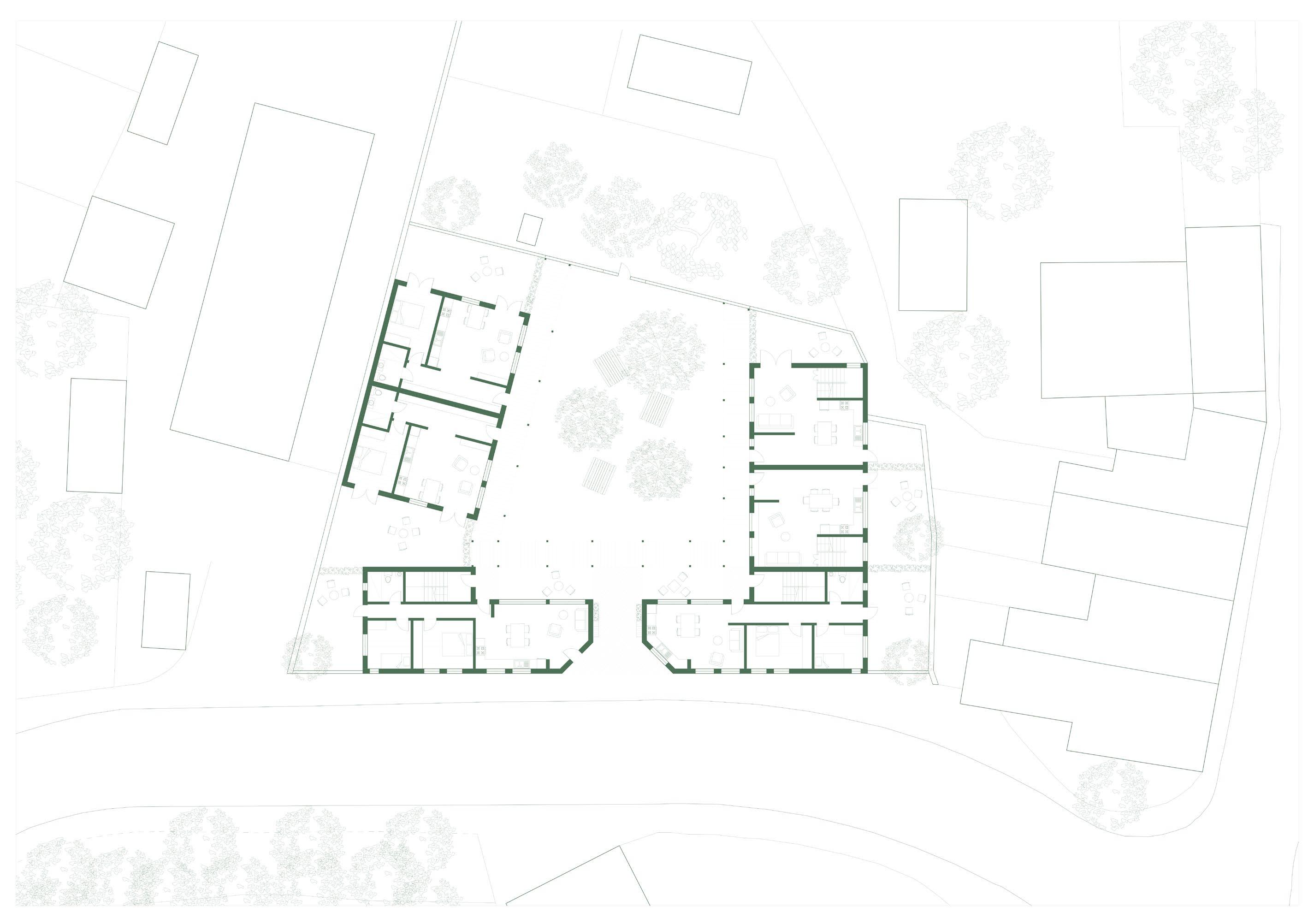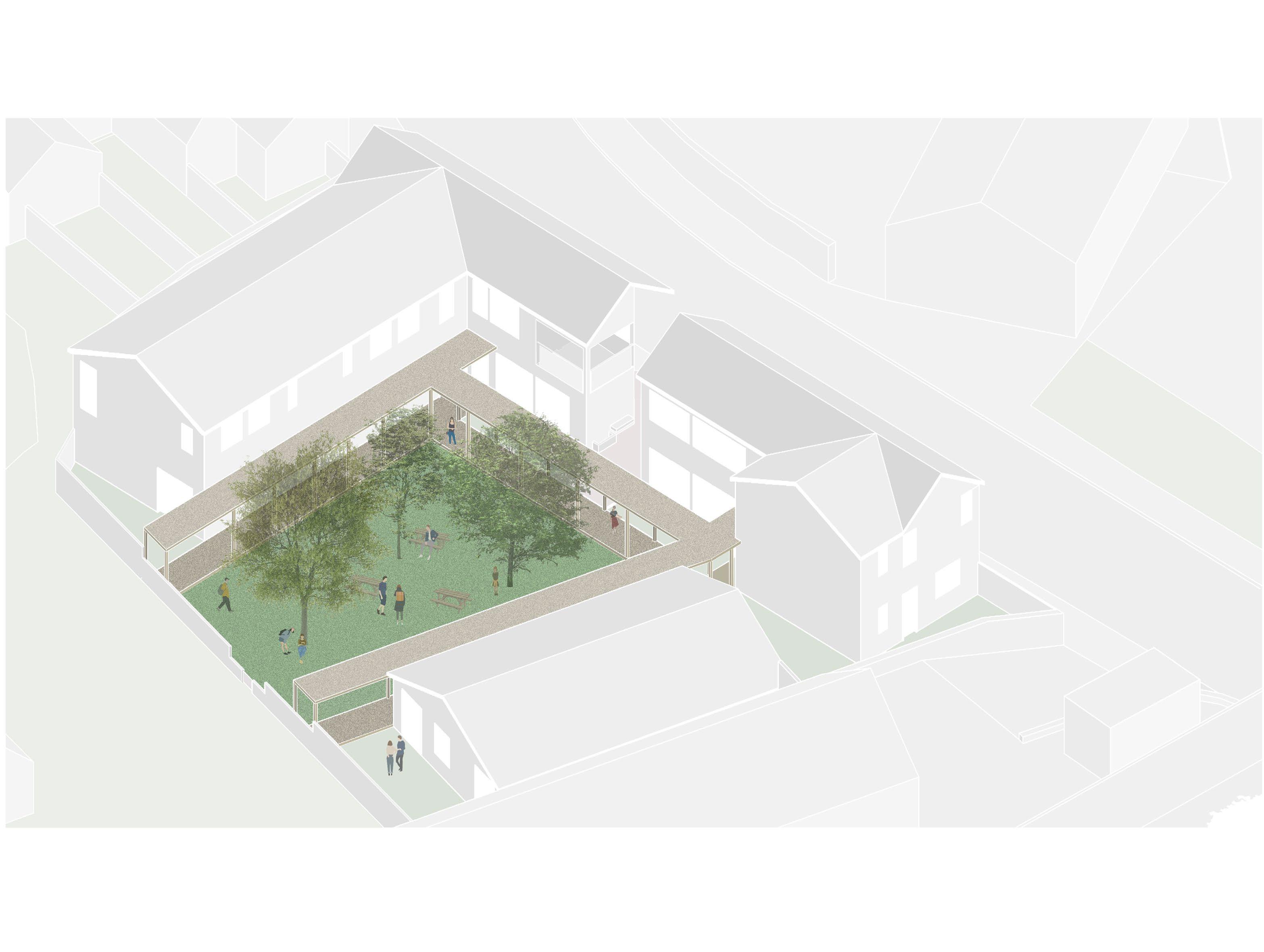 Each dwelling includes a private garden, while the overall U-shaped arrangement creates a sheltered central space that encourages interaction without compromising privacy. The project explores how modest housing can foster belonging through spatial organisation rather than density alone.