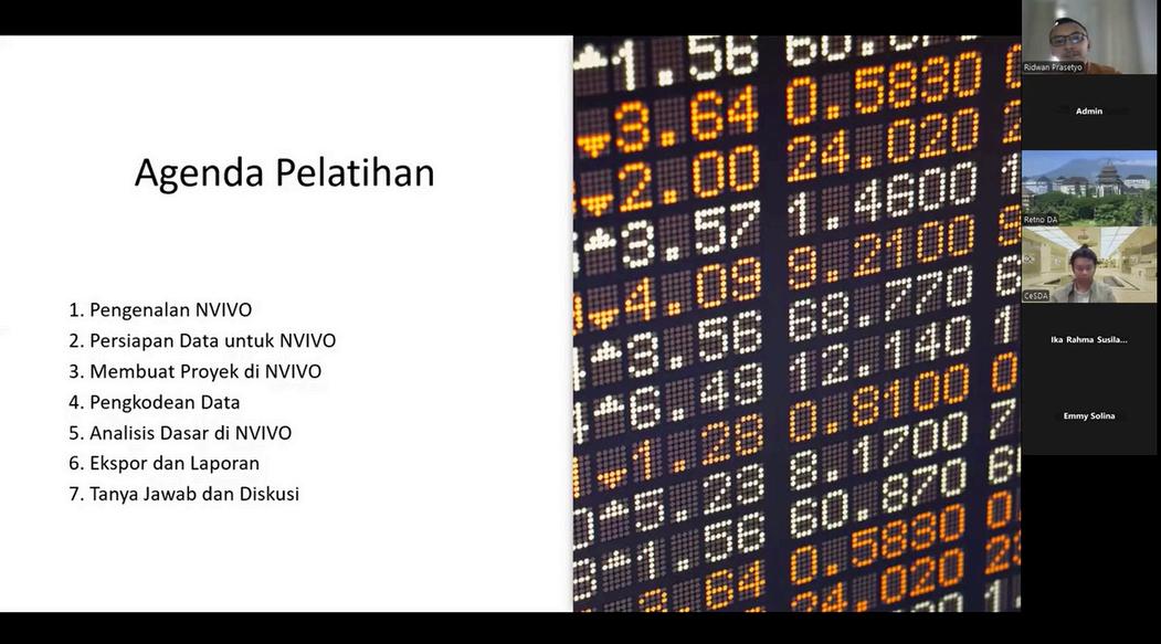 Layanan pelatihan tersebut yang sering kami selenggarakan yang bertujuan untuk meningkatkan kapasitas individu dan organisasi dalam menganalisis data sosial secara efektif, sehingga dapat mendukung pengambilan keputusan yang berbasis bukti. Layanan ini tersediauntukmahasiswa,dosen,danumum.