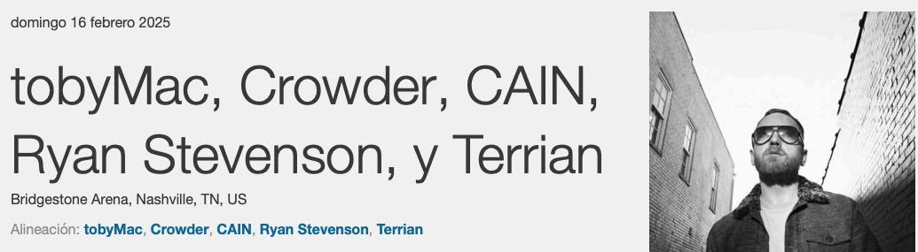 What's it like to have an epic dance party with thousands of new friends? Experience it live at TobyMac's Hits Deep 2025! With a stellar lineup that includes TobyMac, Crowder, CAIN, Ryan Stevenson, and Terrian, this show promises to be an unforgettable night like no other. You'll be on your feet, singing your heart out, feeling the pure energy in the room. Get your tickets now, and we'll see you at TobyMac's Hits Deep 2025! *Artist lineup subject to change