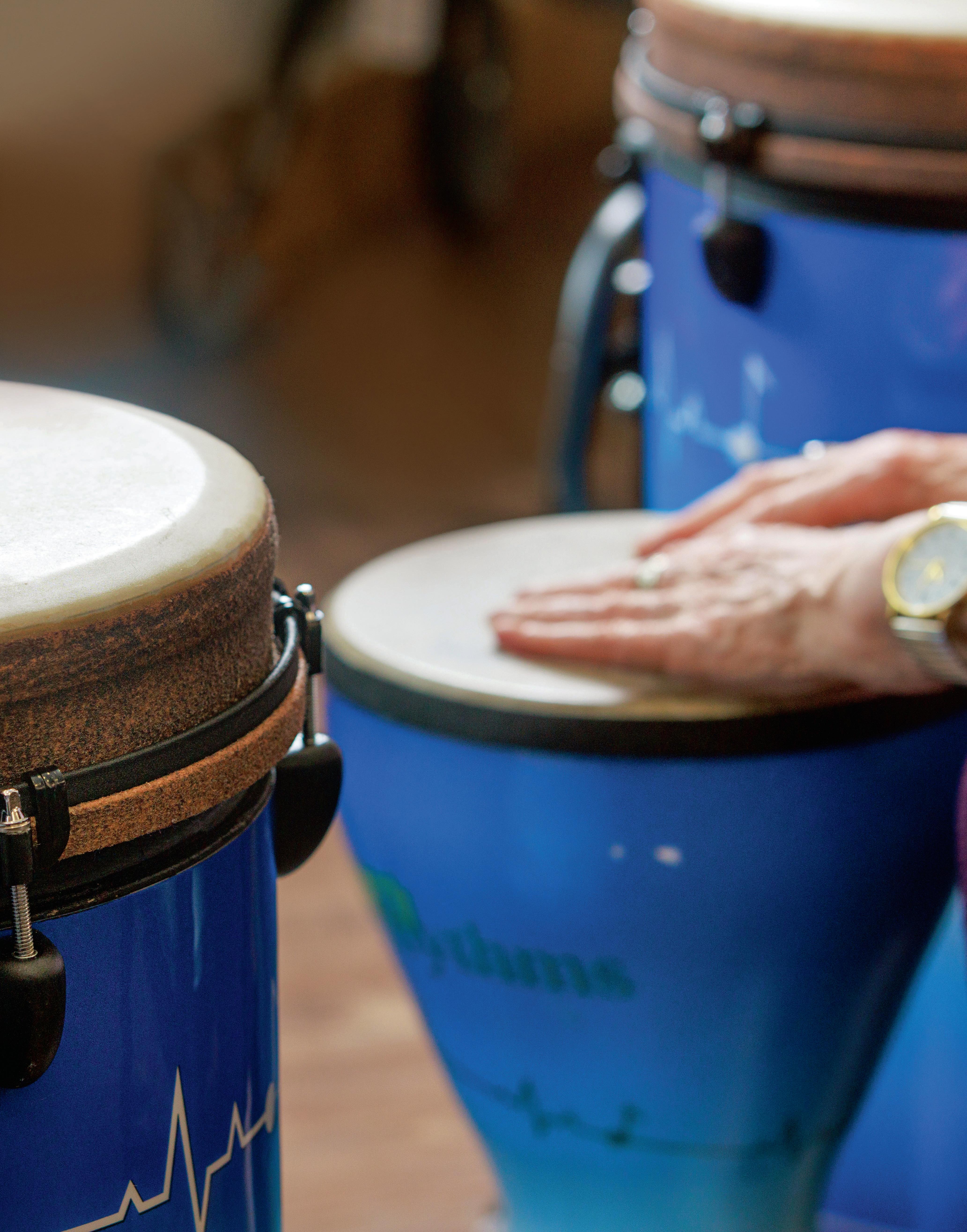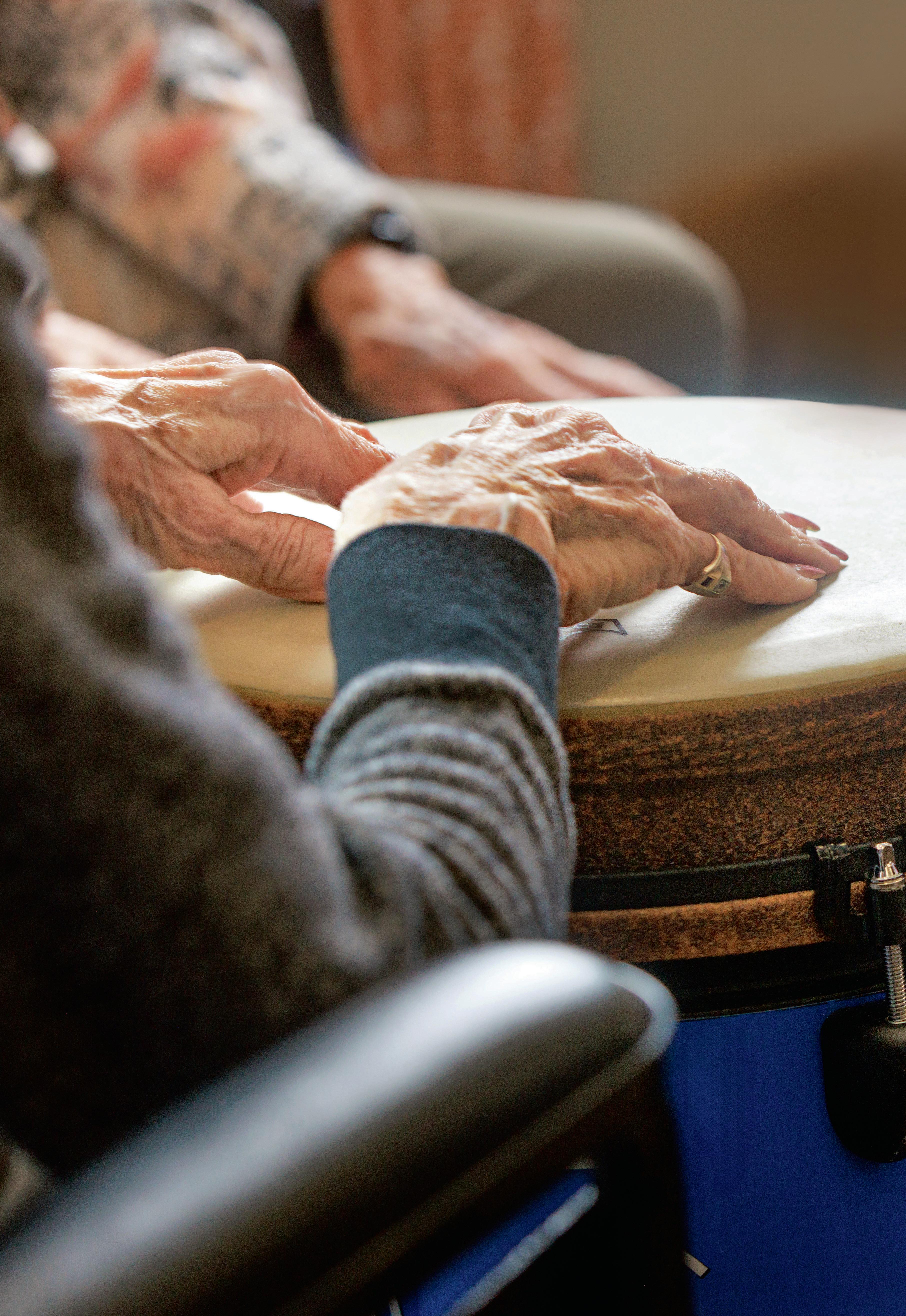 Residents of all abilities come to the Drum Circle at Landow House for the social connections, the chance to express themselves, lively mental stimulation and most of all for the joy it brings.