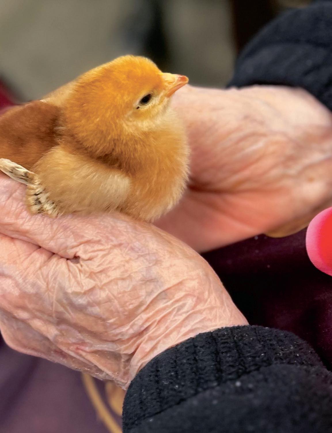 New life is hatching at Hebrew Home. Through partnerships with local farms and organizations, the recreational therapy team brings eggs and caterpillars to campus, giving residents the opportunity to witness the cycle of life for chicks, butterflies and ducks. After the animals are hatched, the ducklings and chicks return to their farms, while butterflies are released outside. The hatchings are live-streamed, allowing room-bound residents to participate and family, friends and community supporters to enjoy using the power of social media.