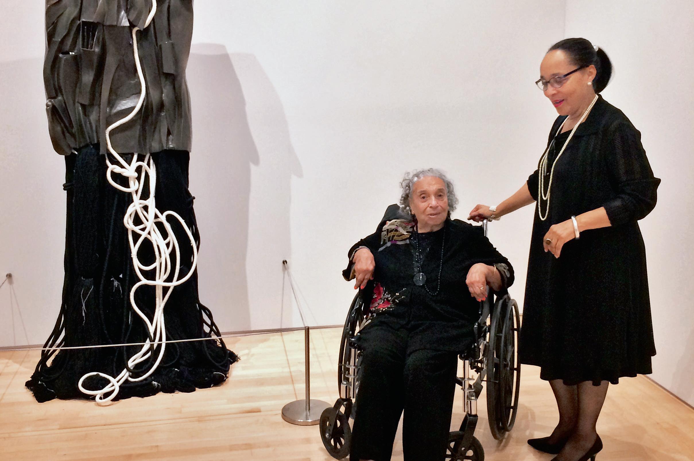 Montgomery and Stephany Neal at The Kemper Museum of Contemporary Art, in 2017, at the exhibition Magnetic Fields: Expanding American Abstraction, 1960s to Today. The exhibition was the first U.S. presentation dedicated exclusively to the formal and historical dialogue of abstraction by women artists of color. Montgomery was one of the artists.