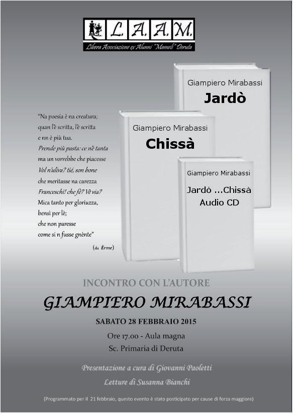 Il primo volume Jardò è una raccolta di testi poetici, mentre Chissà, è una silloge di trentasei racconti in lingua, definiti storie impossibili, che confermano le doti di menestrello e cantore dell’autore. Il cofanetto che raccoglie i due volumi è impreziosito da un audio CD in cui Mirabassi si fa lettore delle sue poesie e i suoi figli, Gabriele e Giovanni, eseguono armonie da loro stessi composte.