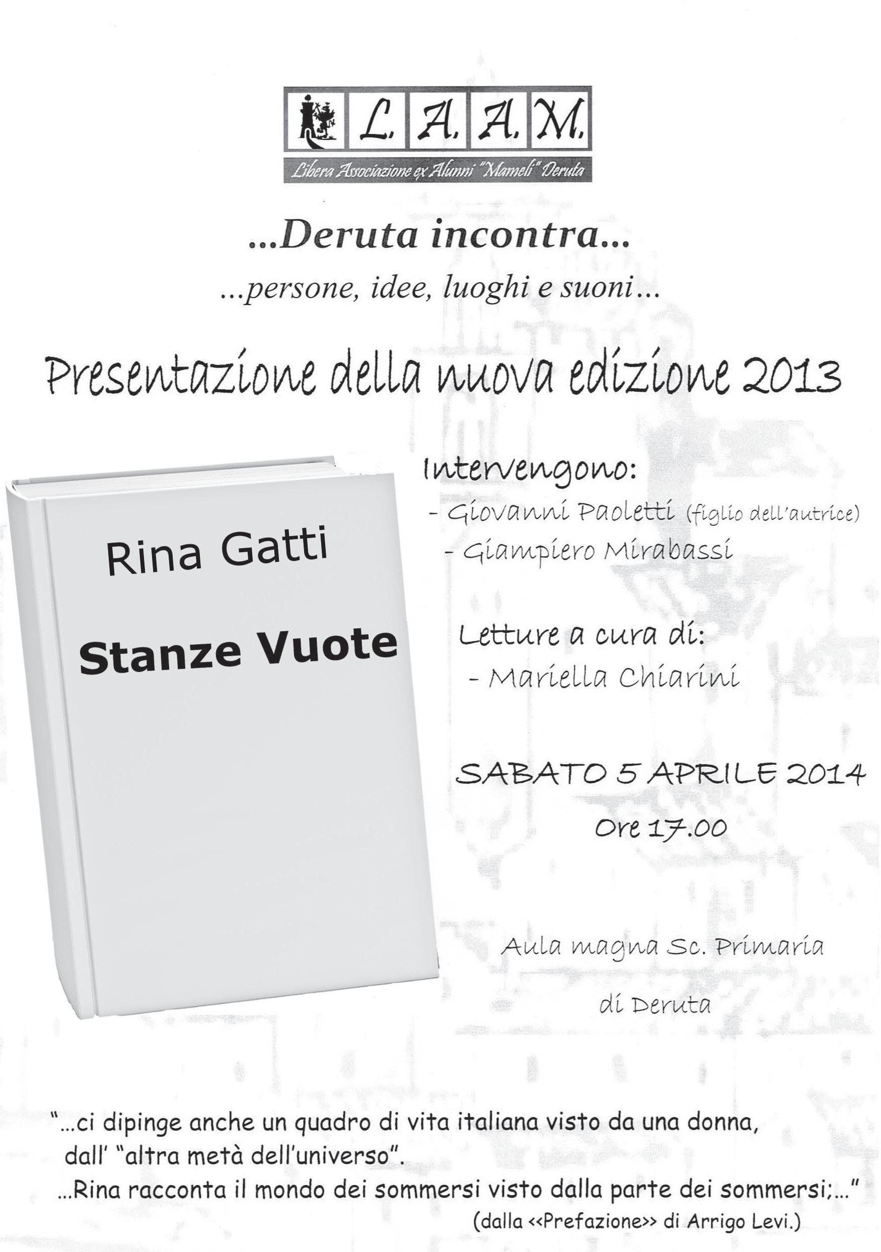 rina Gatti nasce nel 1923 a Torgiano da una famiglia contadina. Frequenta la scuola elementare fino alla terza classe e poi fino alla quinta per intercessione della maestra. Autodidatta, pubblica nel 1992 i suoi primi lavori in versi in una raccolta di poesie di donne promossa dal comune di Perugia. Nel 1999 un suo scritto viene tradotto e pubblicato nel libro Life After Work: Stories of Freedom, Opportunity and Change, edito a Londra. Nel 2000 esce la prima edizione di Stanze vuote seguita nel 2003 dalla prima edizione di Stanze vuote, addio. Nel 2004 vede la luce anche il terzo volume, realizzato insieme al figlio Giovanni Paoletti, Le quattro stagioni e i 12 mesi. Dopo aver ricevuto numerosi premi e riconoscimenti, Rina Gatti muore nel 2005.