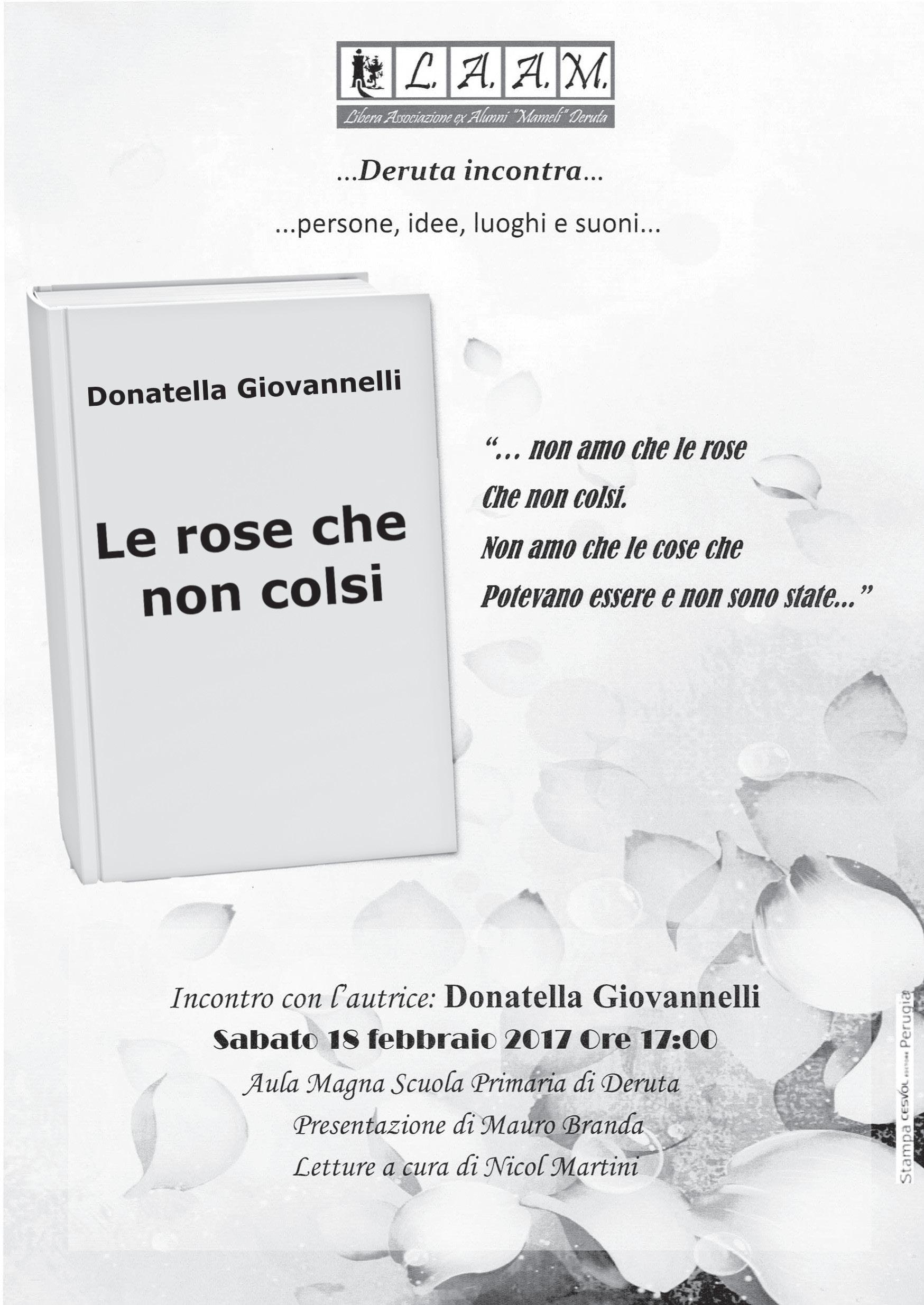 Donatella Giovannelli è nata a Foligno ed ha abitato a Gualdo Cattaneo fino al 1995 trasferendosi poi a Deruta ove risiede tuttora.