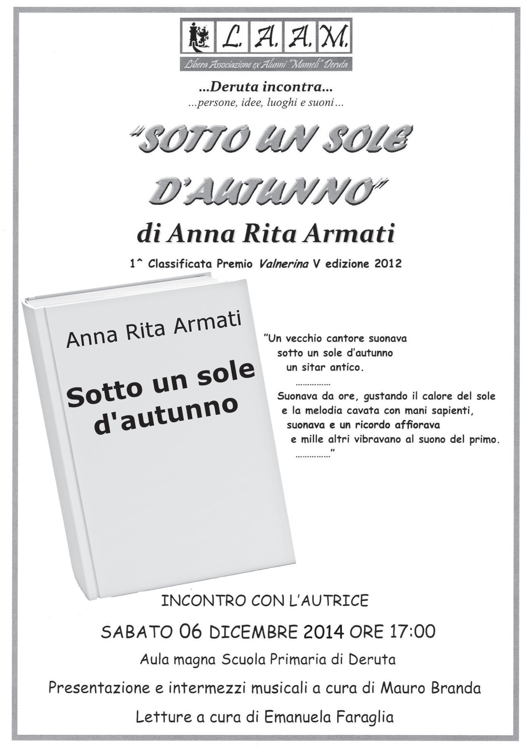 L’amore gentile nella poesia di Annarita Armati si veste di parole vibranti come le corde di un sitar. annarita armati vive a Deruta e lavora a Perugia. Laureata in filosofia scrive da molti anni poesia e prosa con buoni riscontri.