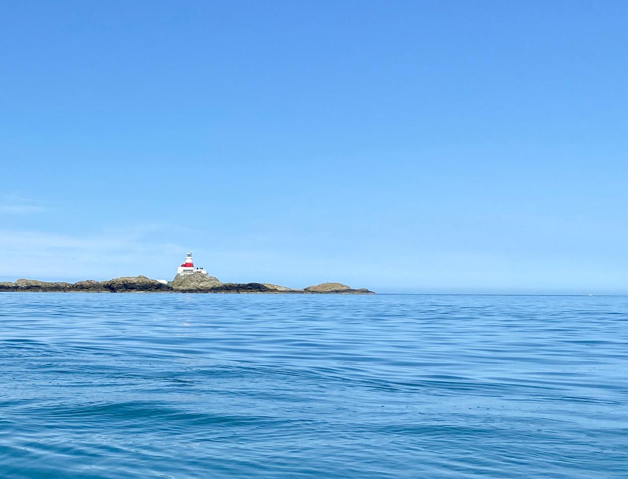 I was up at 5. I could hear the lack of wind and I wanted to go. I sorted the inside of my tent, everything packed away, unzipped and got out stretching. As I did so I automatically looked out to sea. A pod of bottle nose dolphins was just