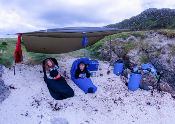 “I SORTED THE INSIDE OF MY TENT, EVERYTHING PACKED AWAY, UNZIPPED AND GOT OUT STRETCHING. AS I DID SO I AUTOMATICALLY LOOKED OUT TO SEA. A POD OF BOTTLE NOSE DOLPHINS WAS JUST OFFSHORE. “DOLPHINS,” I CALLED. THE KIDS WERE OUT LIKE A SHOT.”