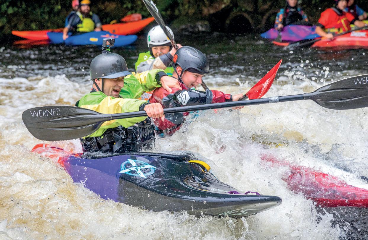 Whilst the local canoe club Seren Dwr ran the GB Prem Slalom they also ran a whole day of come-andtry-it sessions and a beginners Division 4 slalom, with a record turnout on the bank holiday Monday.