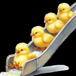 Les mamans poules caquettent, les petits poulets jouent, picorent, volètent !