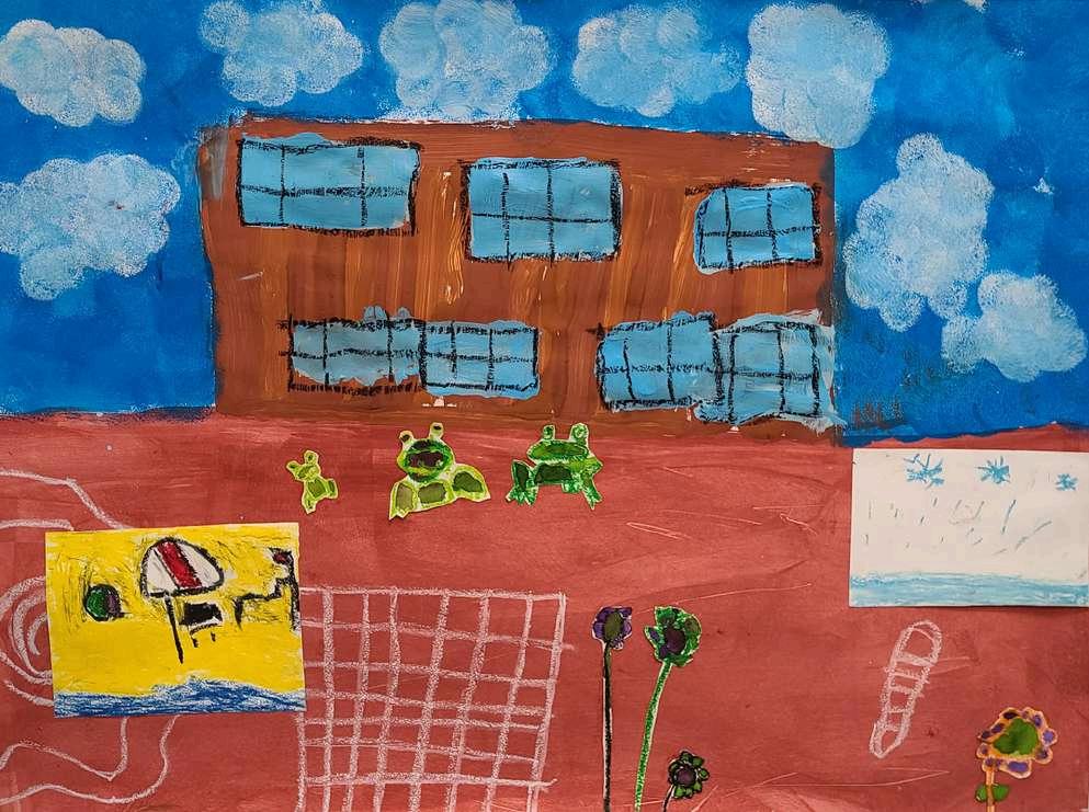 Dans mon école, il y a une cour de récréation où j’aime jouer au foot avec les copains et faire du sport.