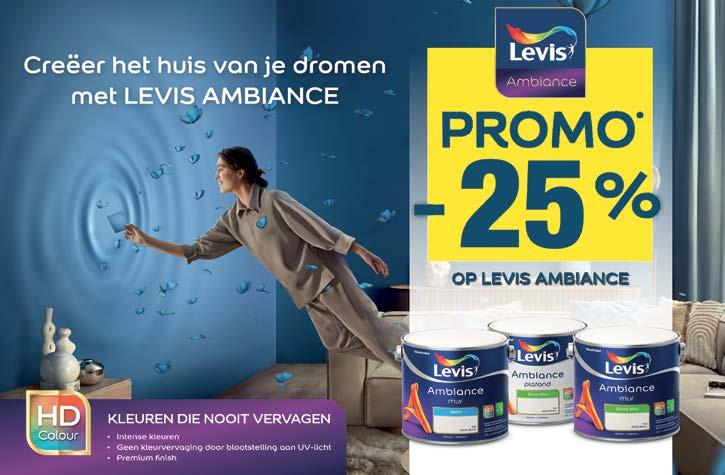 Korting berekend op de aanbevolen verkoopprijs. Niet cumuleerbaar met andere Levis acties. Actie enkel geldig voor Levis mix verven. Niet geldig voor renovatie mengverven.