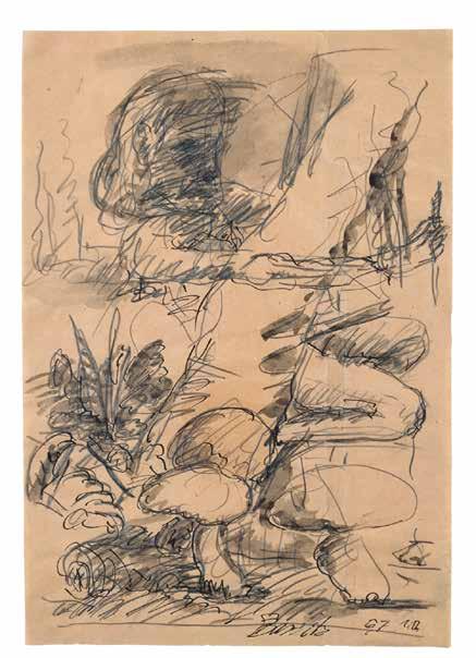 von Rayski’s forest studies, which had been the template for Der Wald auf dem Kopf (1969). But this reference makes it very clear that home, the soil from which one has grown, was and continues to be a fundamental element for the “modern” painter Baselitz. “Remix” enables a renewal and, at the same time, a clarification of the earlier Helden painting and its intention.