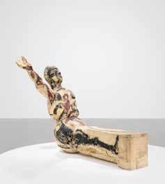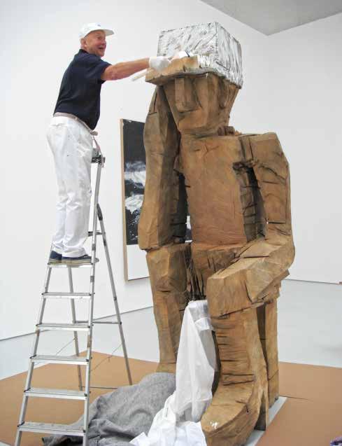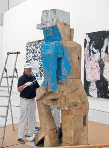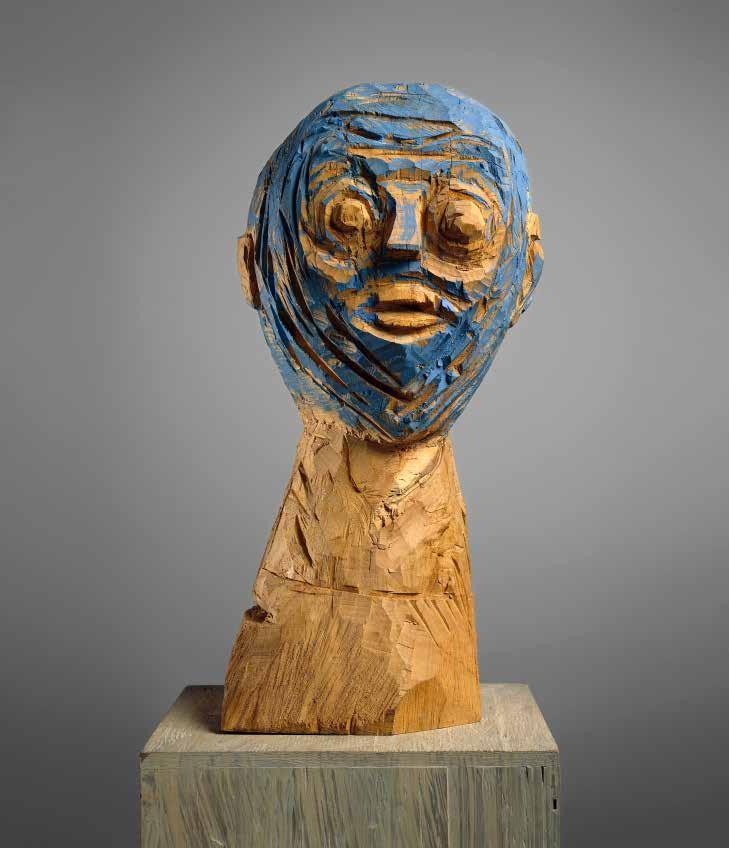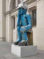 similarly robust tools. With this approach he was able to create the rough, rugged, cracked shapes that occupy their own place in contemporary sculpture, one that strikes many viewers as highly disconcerting. In discussing the creation of these works, Baselitz has frequently recounted the aggression he invested in them. This seems necessary in order to arrive at an understanding of the origin of the motif. In this respect, hewing figures and heads from the block is related to the excavations of archeologists. Even though these sculptures, apart from a few exceptions, do not display anything individual, they confront the viewer with conditions that the viewer can empathize with and compare to their own experiences.