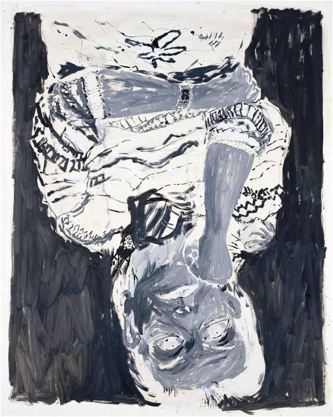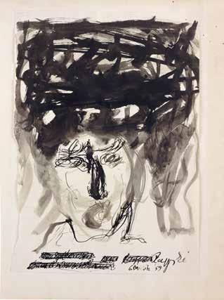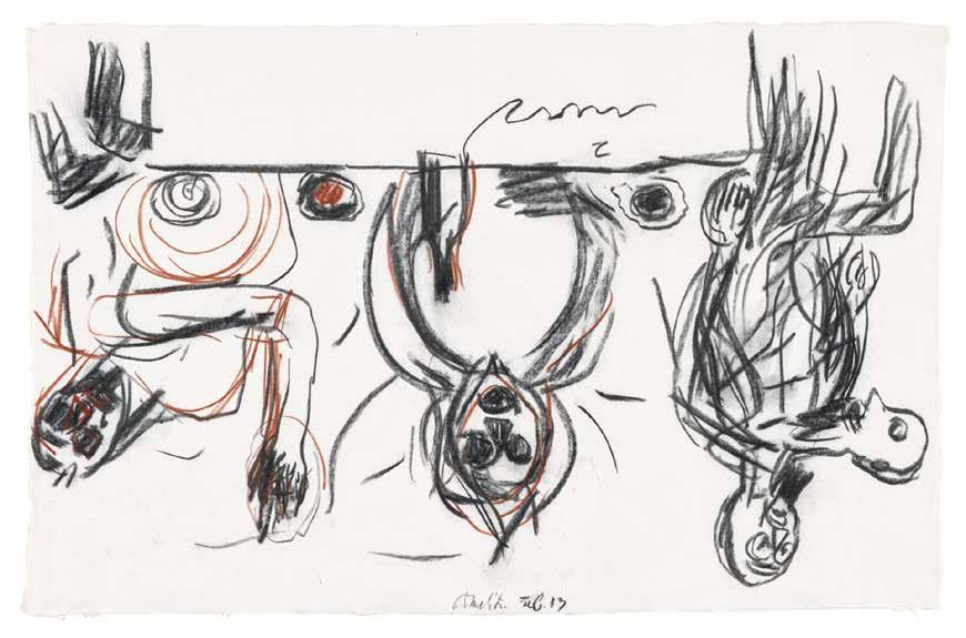 paradigm shift that the 20 t h century brought to the was a shift from mimesis to progress. Novelty the criterion for quality and fame. Painting was dead, the departure from the picture initiated, life” proclaimed, open artworks demanded, marriage of high and low consummated, and new celebrated as a great promise. In Baselitz’s case, it to distinguish between the search for the new renewal. To further develop painting, sculpture, arts, and drawing, shifts were required of Baselitz had to take step by step in order to react to history in his work. His inventions took place given frame, which he stretched and damaged, abandoned. In his reorientation of motifs, demonstrated a departure from a painting within painting itself. In doing so, he provoked an inner antagonism. With the large linocuts, Baselitz established a new category of graphic art. His sculptures
